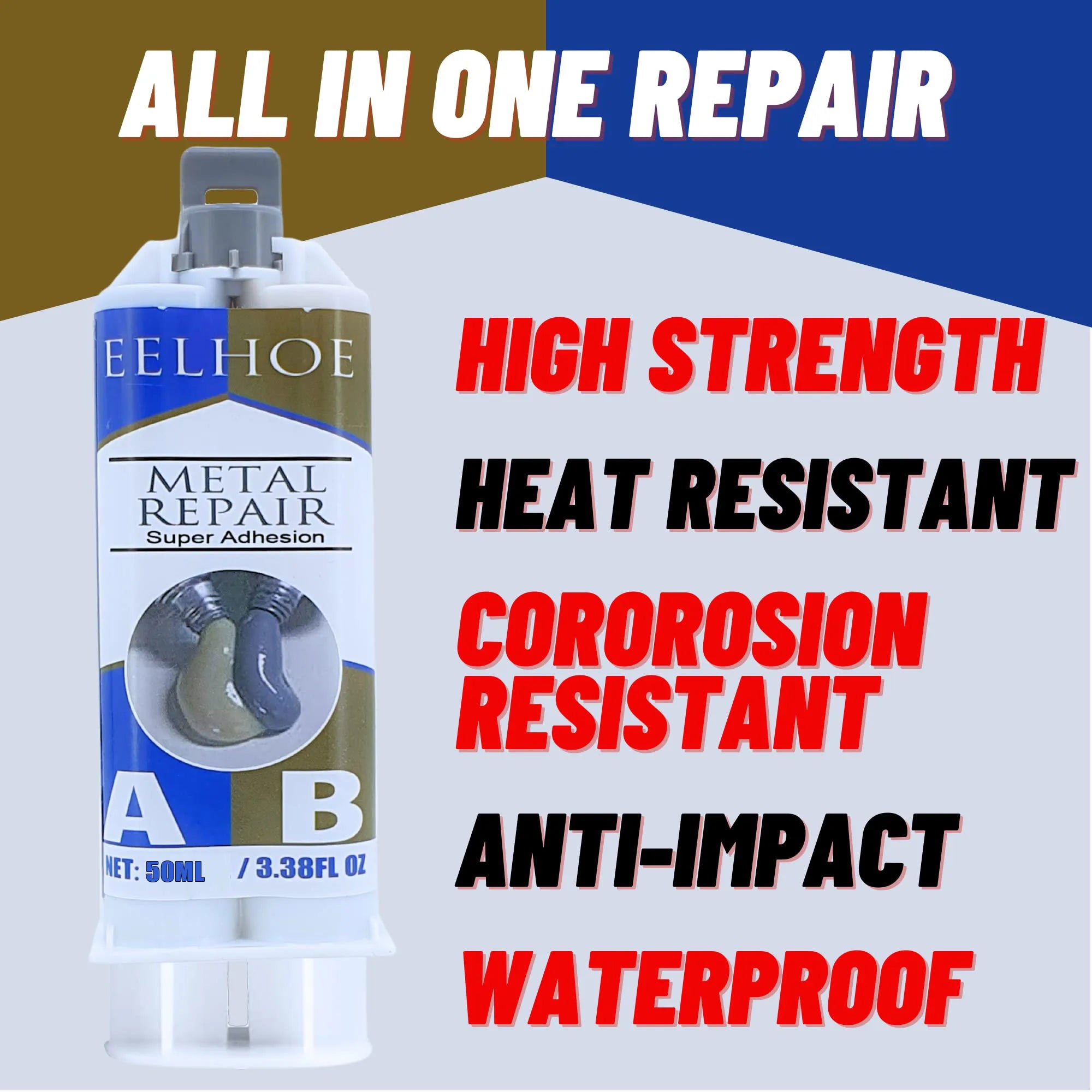 يوفر غراء EELHOE لإصلاح المعادن حلاً موثوقًا لاستعادة الأسطح المعدنية التالفة أو المكسورة. بفضل التصاقه الفائق وقدراته المقاومة للماء، يعد غراء الإيبوكسي ثنائي المكونات هذا (الجزء أ + الجزء ب) مثاليًا لإصلاح أجزاء المحرك ومضخات الضغط العالي وعلب الزيت والمبادلات الحرارية والمسبوكات المعدنية والمزيد. مصمم لتحمل درجات الحرارة العالية والظروف القاسية، يلتصق بسرعة ويتم معالجته لتشكيل سدادة متينة. سواء كنت تقوم بإصلاح الأجهزة أو المعدات الميكانيكية، يضمن هذا الغراء المعدني متعدد الاستخدامات نتائج احترافية في المنزل.