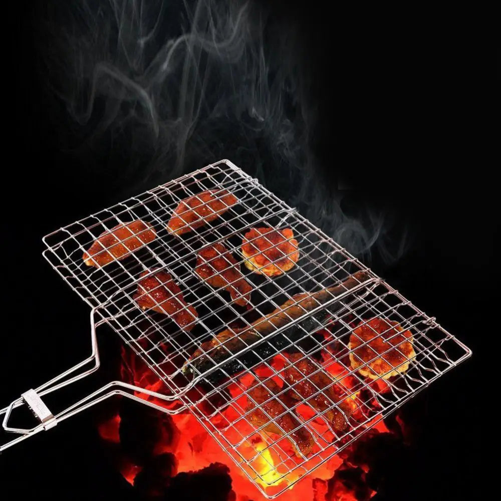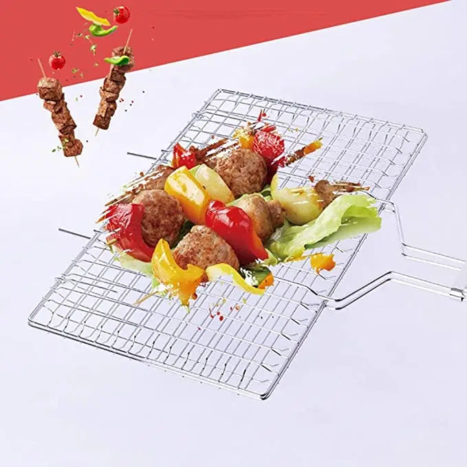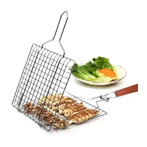 حسّن تجربة الشواء مع حامل الشبكة الشبكية من الفولاذ المقاوم للصدأ. مصنوع من فولاذ عالي الجودة مطلي بالكروم، مما يضمن المتانة وسهولة التنظيف. تصميمه الذكي يتضمن مقبضًا خشبيًا مقاومًا للحرارة، مما يمنع الحوادث. ميزاته المحمولة، وقابليته للقفل والطي تجعله ضروريًا لعشاق الشواء.