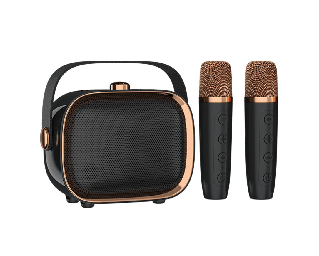 هذه السماعة اللاسلكية هي رفيقك المثالي في الكاريوكي. تتميز بتصميم أنيق، وتوفر جودة صوت عالية الوضوح وصوت محيطي ستيريو غامر. مع معالجة مجال الصوت DSP ومستشعر الميكروفون المُحسّن حديثًا، استمتع بصوت عالٍ وخالٍ من التشويش. تُضفي المنطقة المطلية بالذهب لمسة من الأناقة على التصميم الأنيق. غنِّ منفردًا أو وصّل ميكروفونين لغناء ثنائي مع أصدقائك. تشمل وظائفها المتعددة ميكروفونًا لاسلكيًا، وتشغيلًا لاسلكيًا، ومحرك أقراص USB، وبطاقة TF، ومدخل AUX. توفر بطاريتها بسعة 2000 مللي أمبير/ساعة ما يصل إلى 6 ساعات من التشغيل المتواصل. توفر السماعات المغناطيسية المزدوجة المدمجة تجربة صوتية استثنائية يصعب منافستها. سواء كنت في المنزل أو في أجواء الكاريوكي، فإن هذه السماعة تعمل بشكل استثنائي، وتدعم توصيل الميكروفونين المزدوجين لتجربة غناء ثنائي لم يسبق لها مثيل. احتفل أينما ذهبت مع هذه السماعة الصغيرة والقوية.