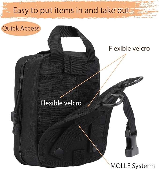 Built for rugged conditions, the compact bag is crafted from high-quality fabric that resists water, dust, and wear. It’s lightweight and easy to carry, making it perfect for your backpack, car, or travel gear. Inside, neatly organized compartments keep bandages, gauze, scissors, and other life-saving tools secure and easy to access during critical moments.
