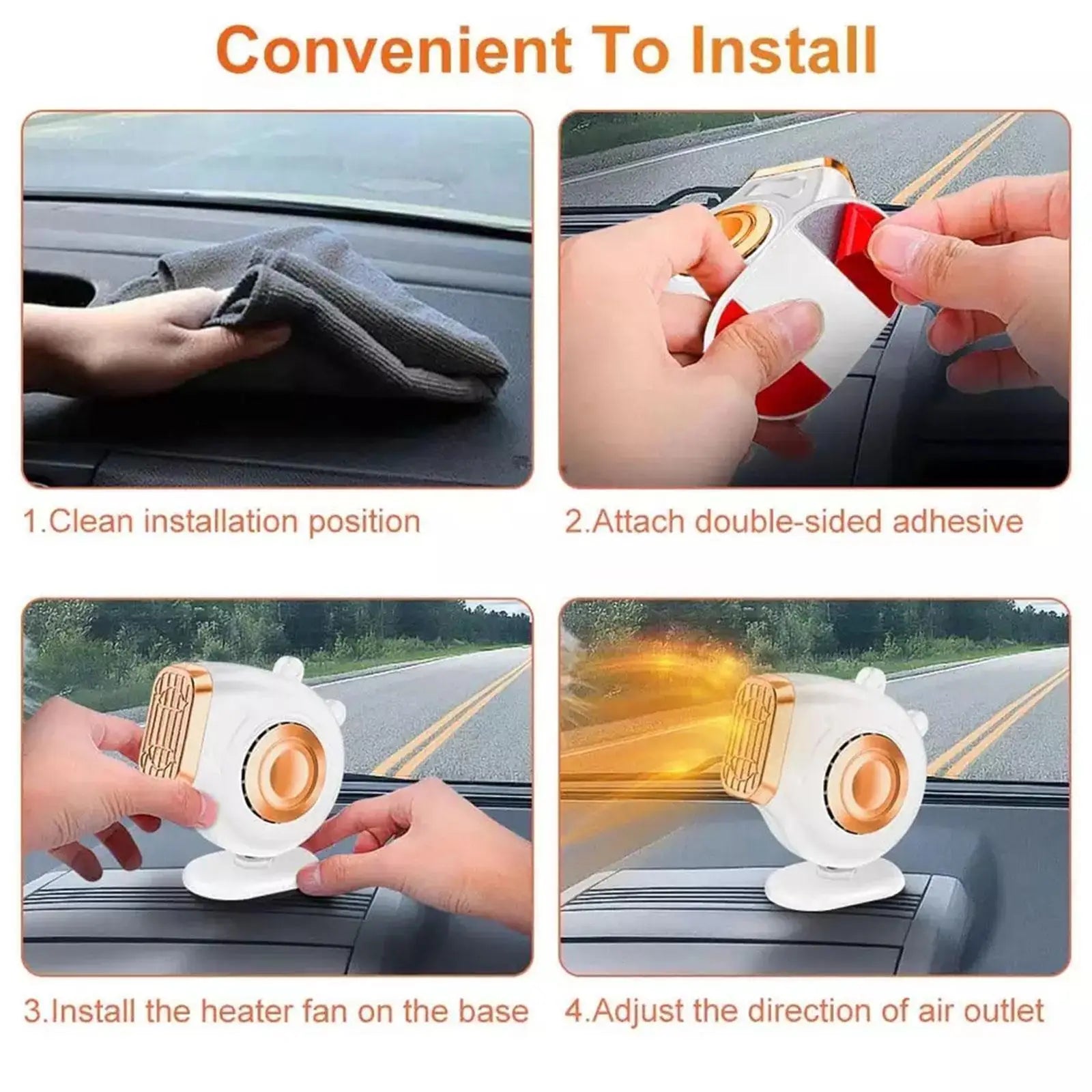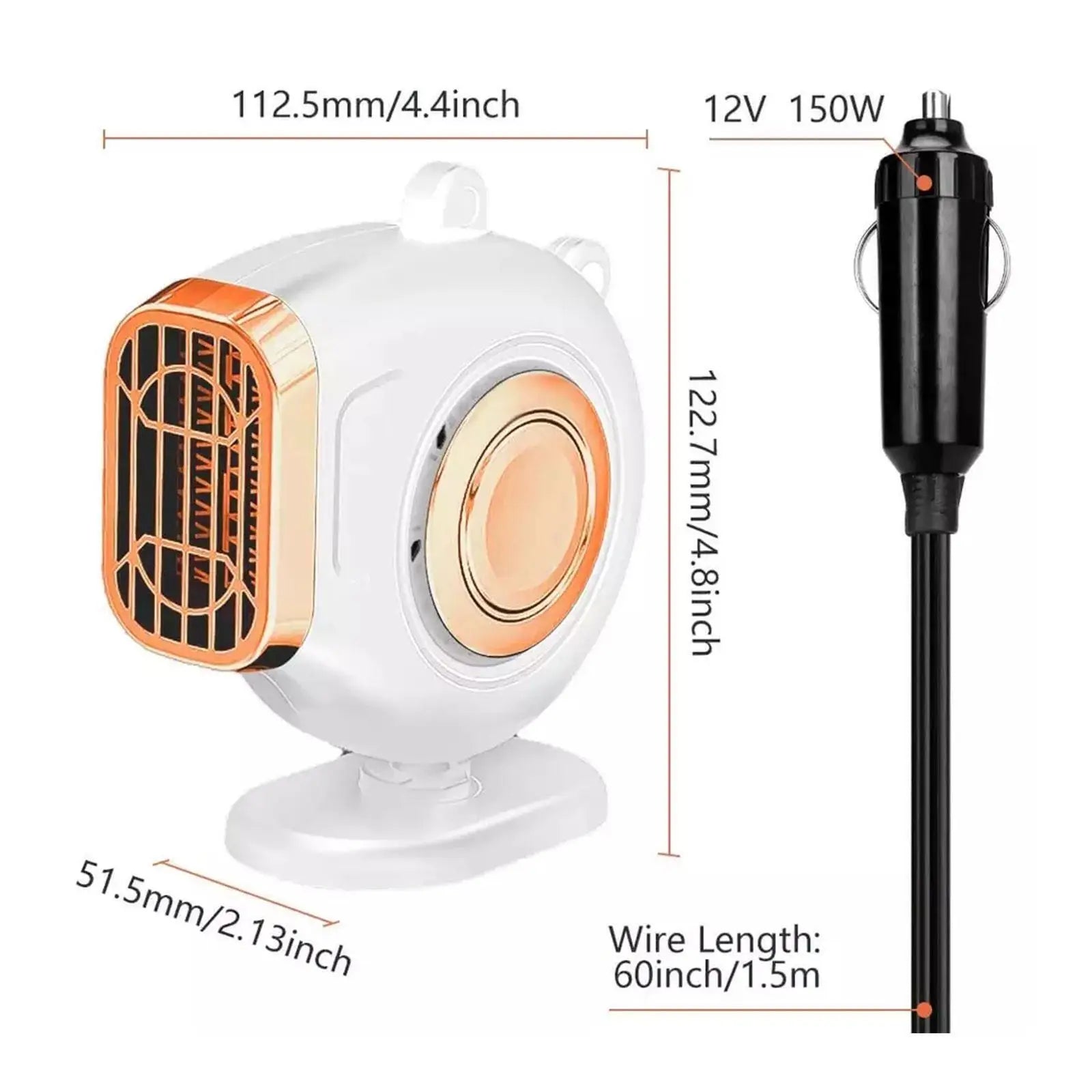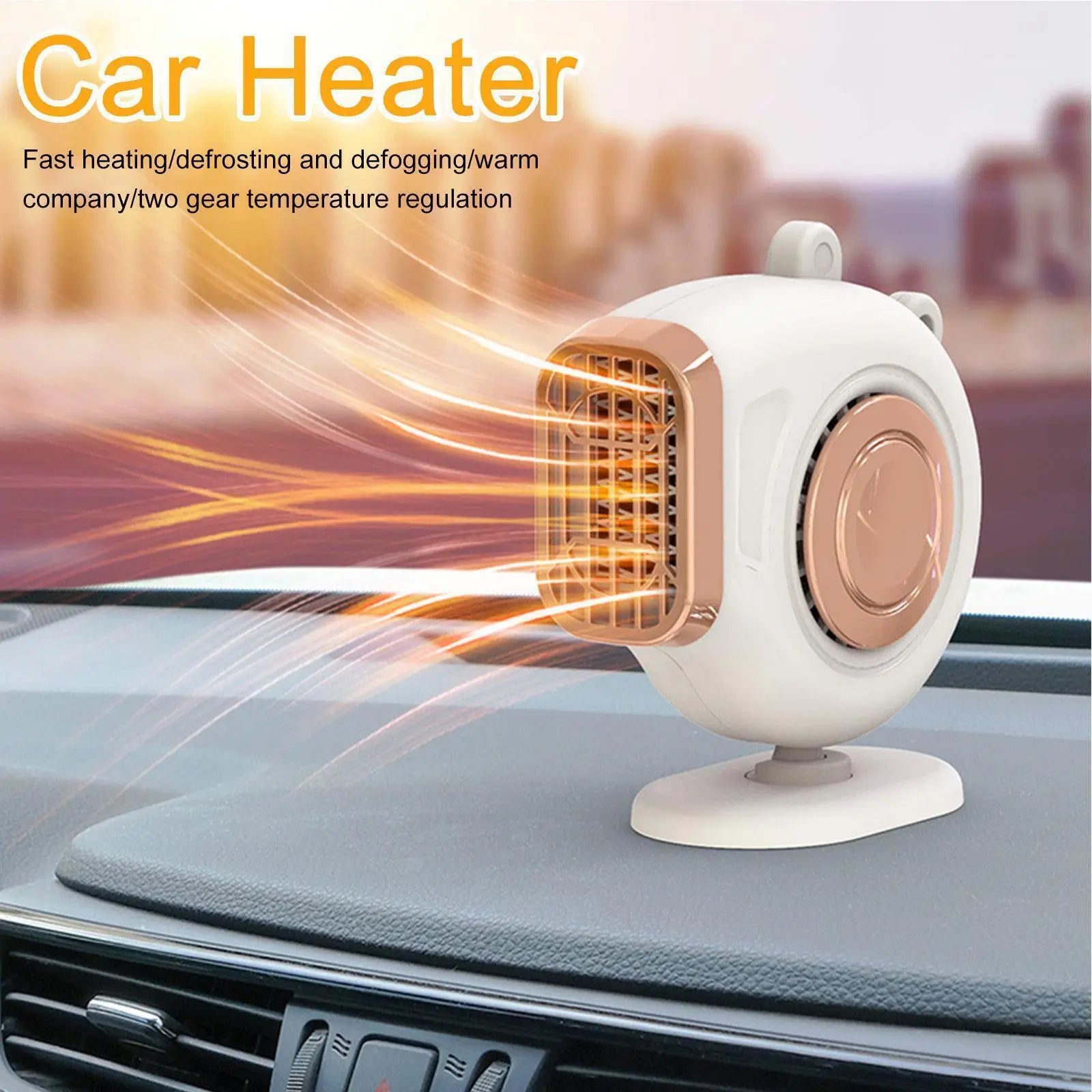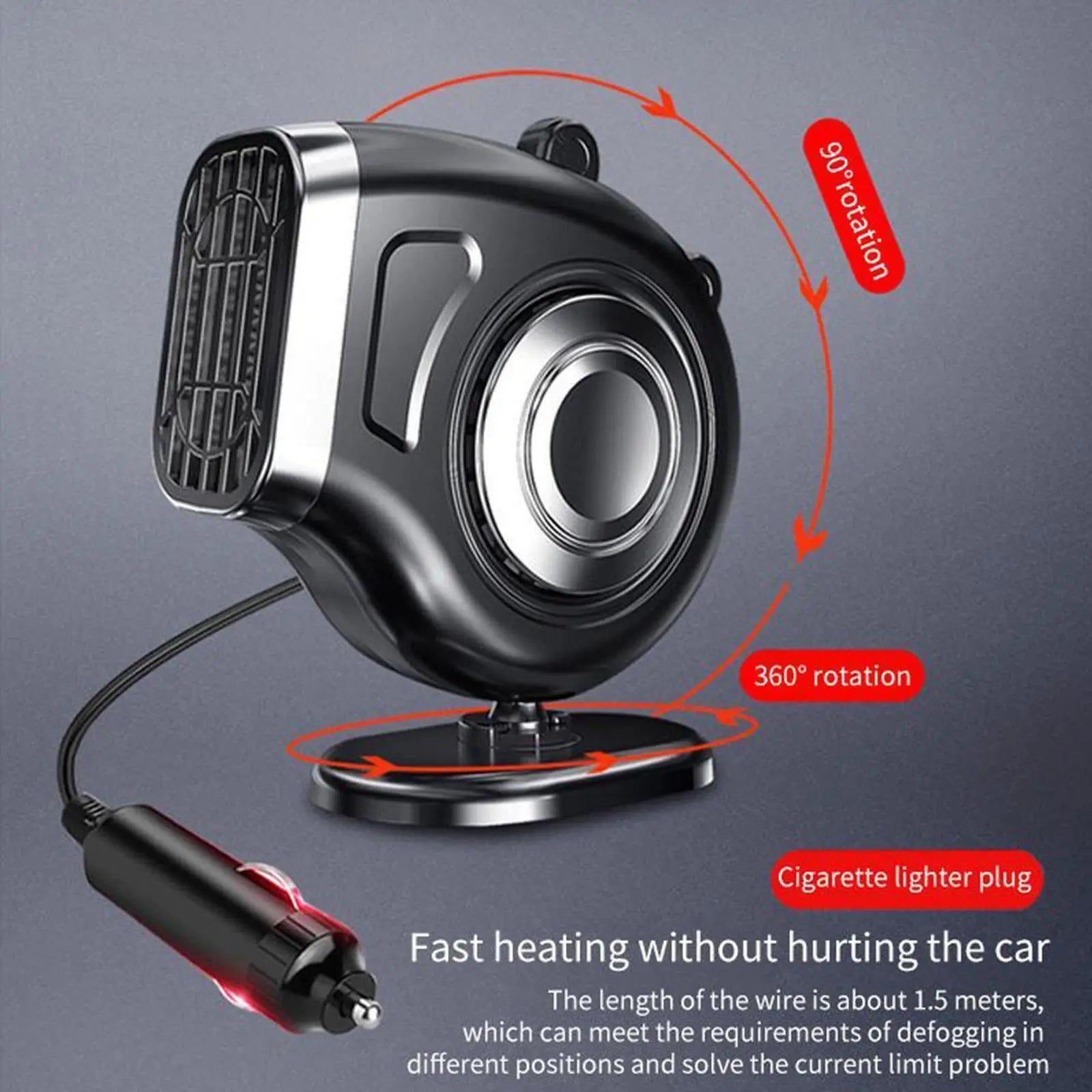 This car heater is a must-have for cold winter days. This portable heater is designed to quickly heat up your car's interior and defrost your windshield, ensuring a clear view and a comfortable driving experience. Made of high-quality and durable ABS plastic, this car heater is built to last. It features a 360° rotatable design, allowing you to adjust the direction of the airflow according to your needs. Whether you need to defrost your windshield or cool down your car on a hot day, this versatile device has got you covered. Its low noise operation ensures a peaceful drive, while the fast heating function and overheating protection guarantee efficient and safe use. Take control of your car's climate with the 2-in-1 Fast Car Heater Defroster.