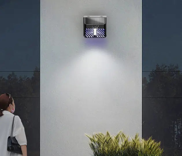 Enhance your outdoor space with 2-in-1 2-in-1 Motion Activated LED Wall Lamp with Bug Zapper, a revolutionary solar-powered device that combines a motion-activated LED Wall Lamp with a bug zapper. Its large solar panel and rechargeable battery ensure efficient charging during the day, automatically activating the device at night. Resistant to extreme weather, it's perfect for gardens, courtyards, and pools. The smart PIR sensor covers a wide area, offering two modes – zapper only and zapper + Wall Lamp. With UV light preferred by mosquitoes and a high-voltage grid, it provides bug-free enjoyment for your family. Safe for pets and kids, it's the ideal solution for a mosquito-free outdoor haven.