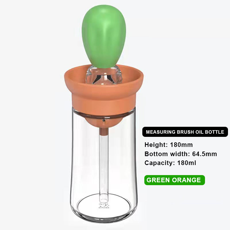 This 2-in-1 oil dispenser combines a silicone dropper and brush with a glass bottle and measurement scale. Ideal for precise pouring and basting during cooking, baking, or grilling.