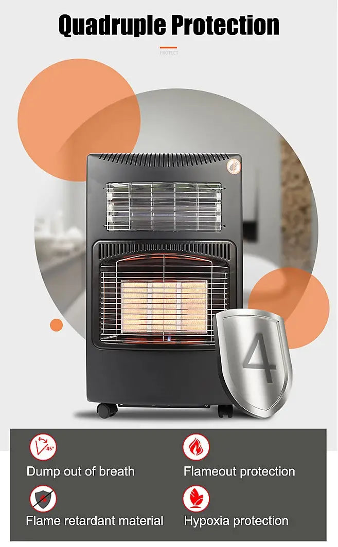Maximize your indoor comfort with the versatile 2 in 1 Electric & Gas Heater. Featuring dual heating modes with a 4200 W max heat output, 3 adjustable heat settings, and robust safety measures, this heater ensures warmth and safety in any environment.