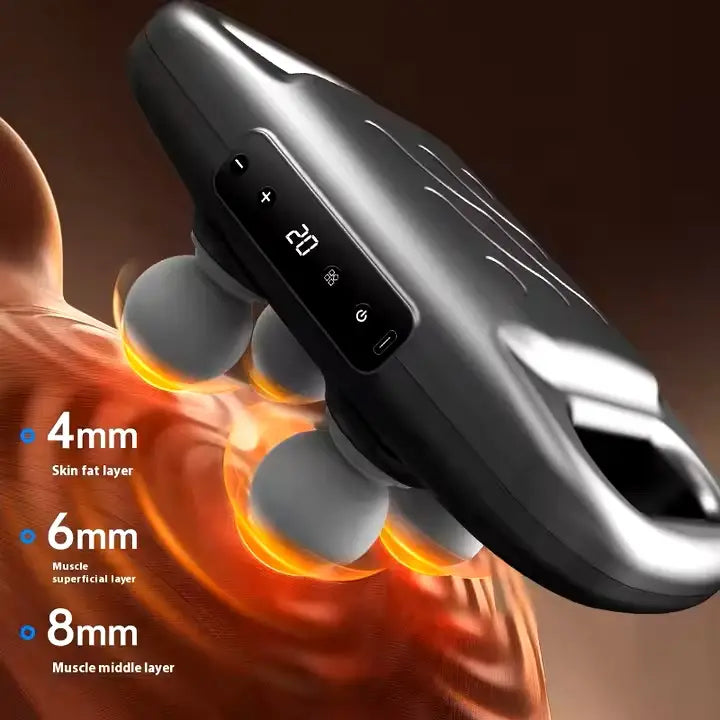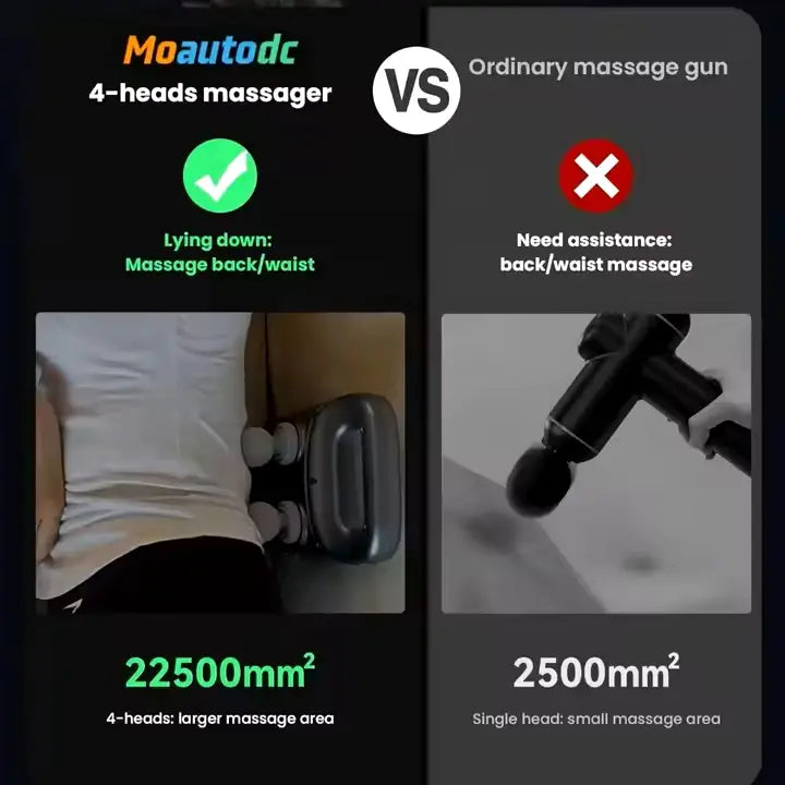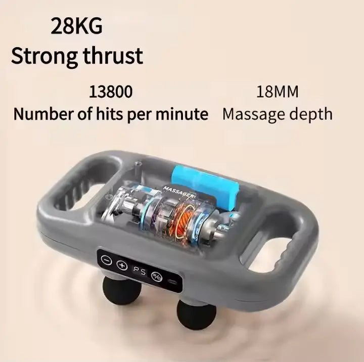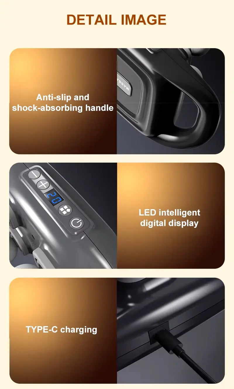 The 4-headed S2 Handheld Massage Gun is designed to relieve muscle tension and improve recovery. With 9 adjustable modes and professional-grade massage heads, it delivers powerful high-frequency vibrations. Its intelligent chip and low-noise motor ensure quiet yet effective performance. The LCD screen provides intuitive controls, and USB Type-C charging offers convenience and portability. Whether targeting the back, thighs, calves, or feet, this massager is perfect for personalized, full-body relief.
