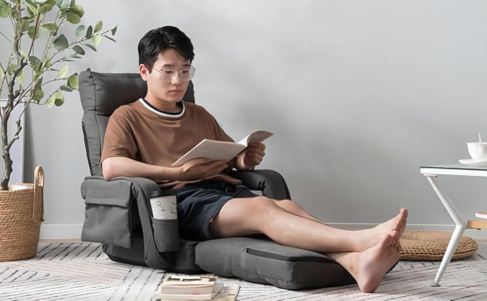 Upgrade your gaming & relaxation experience with the Gaming Recliner Chair! Designed for comfort & support, this 14-level adjustable floor sofa features a high backrest, armrests, & thick cushioning. The foldable design makes it easy to store, while side pockets add convenience. Perfect for gaming, reading & lounging!