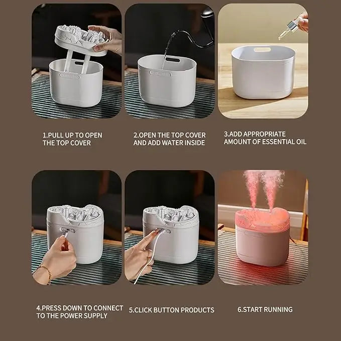 The Air Humidifier & Essential Oil Diffuser combines function with aesthetic appeal. With a 300ml water tank and double spray mode, it efficiently humidifies your space while adding a refreshing scent when paired with essential oils. The sleek design and colorful night light make it an ideal decorative piece for any room, from bedrooms and living rooms to cafes and bars. Crafted from durable PP electronic components, this portable humidifier is lightweight and reliable, ensuring long-lasting use. It also makes for a thoughtful gift, adding an artistic and relaxing atmosphere to any space.