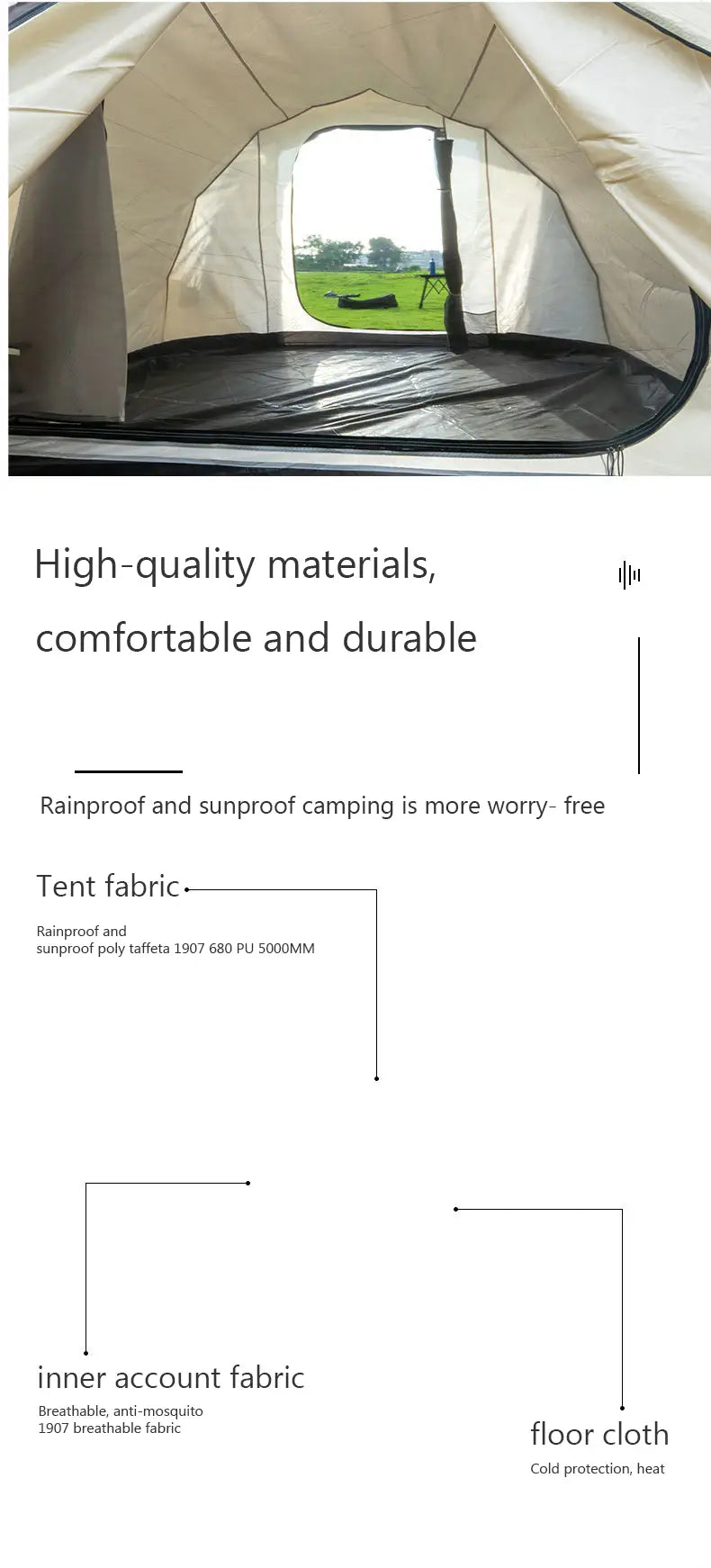 • External Tent Material: Oxford cloth 210D PU 5000MM