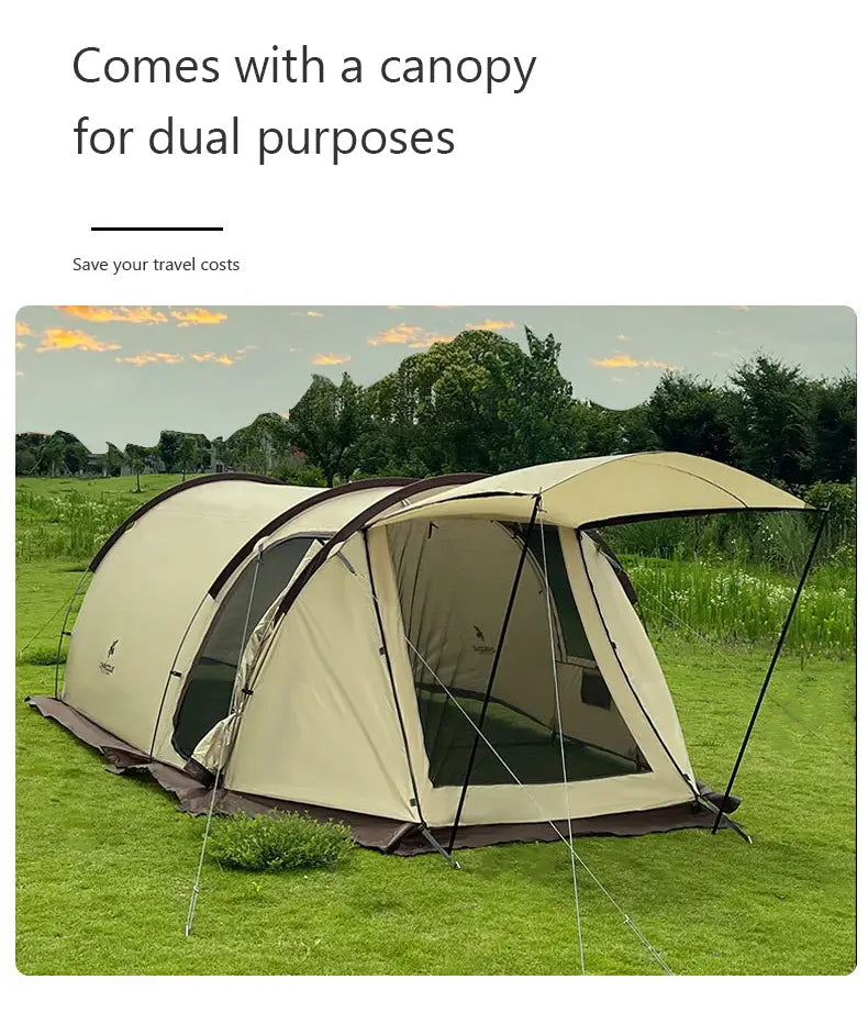 Transform your camping adventures with the Chanodug Tunnel Tent. Spacious, rainproof, and sunproof, it's your ideal outdoor sanctuary.