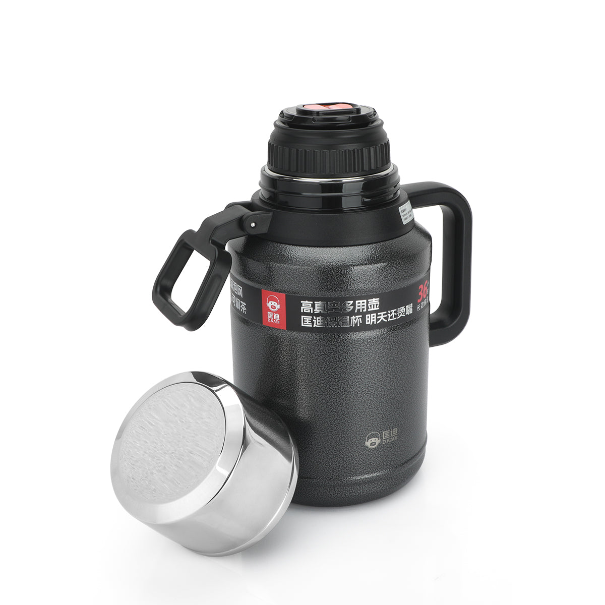 This large, double-walled, insulated thermos flask offers excellent capacity and keeps your beverages hot for 36 hours and cold for 38 hours.