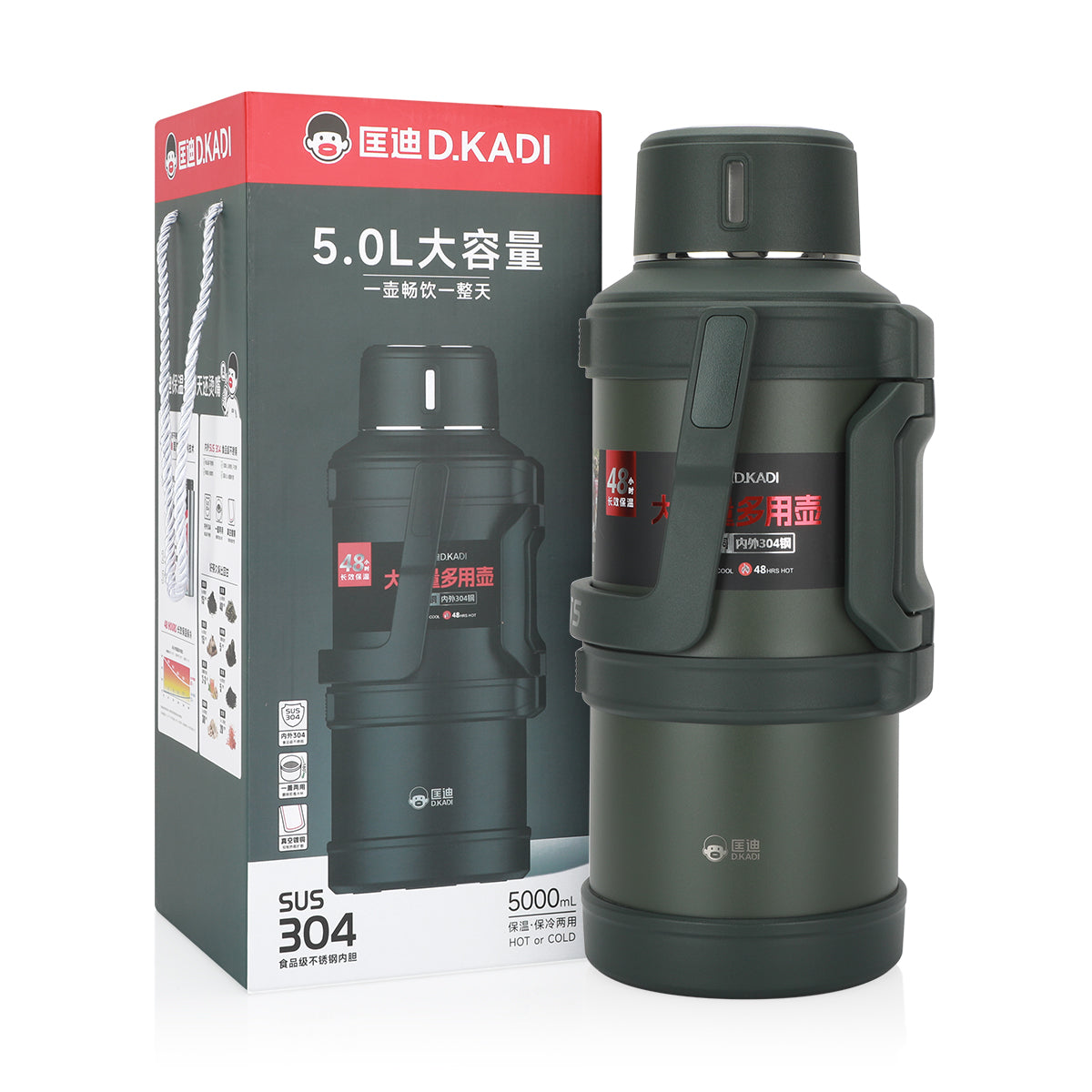 The D.kadi Vacuum Bottle 3L in Green is a spacious, double-walled flask designed to keep your beverages hot for 36 hours and cold for 38 hours.