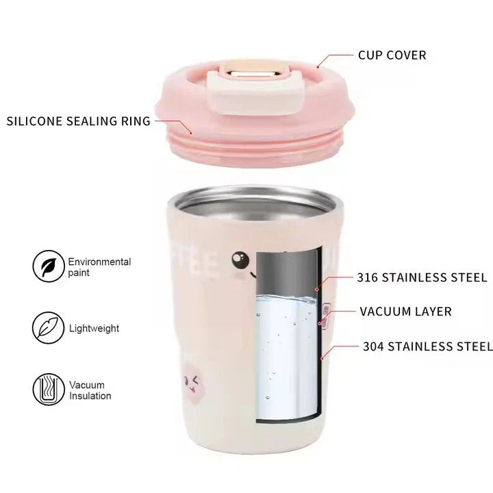This stainless steel vacuum coffee mug is designed to keep your beverages at the perfect temperature for longer. Crafted with an inner layer of 304 stainless steel and an outer layer of 201 stainless steel, it combines durability with a sleek finish. With a capacity of 380ml and a compact size of 9×13cm or 9×16.5cm, it’s ideal for home, office, or travel use.