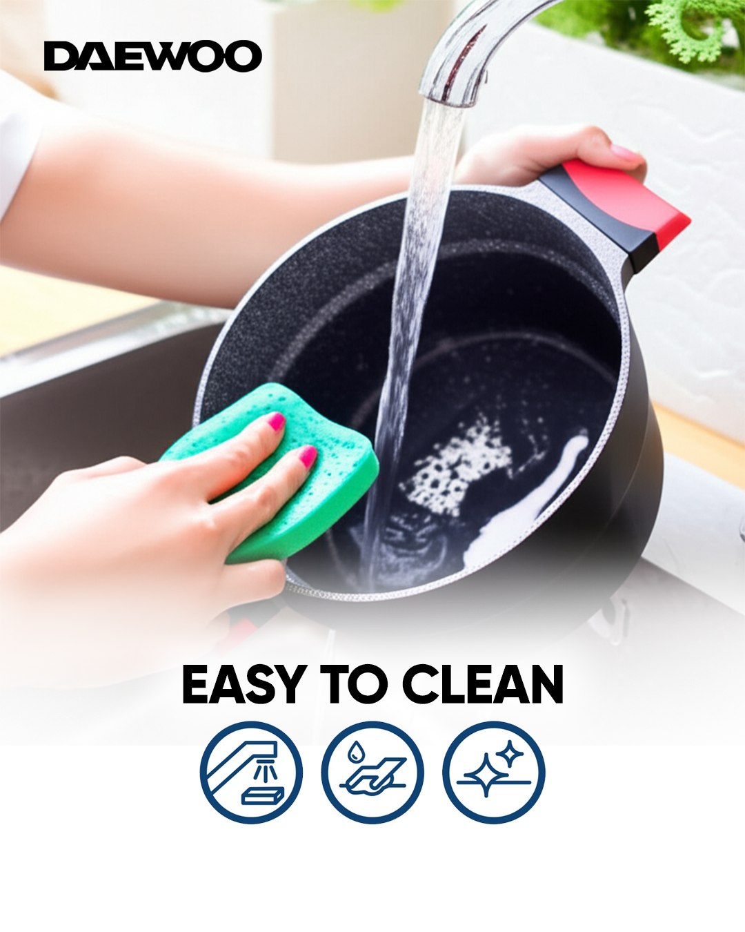 The Daewoo 24cm Die-Cast Aluminum Pot from the X series is your everyday use pot for a fast, healthy, and low-effort meal. The pot is perfect for stews, soups, and making sauces. The pot is coated with a non-stick granite layer in addition to being compatible with every stovetop. All this is finished with a bold red-to-black gradient finish, adding a touch of style to your whole kitchen.