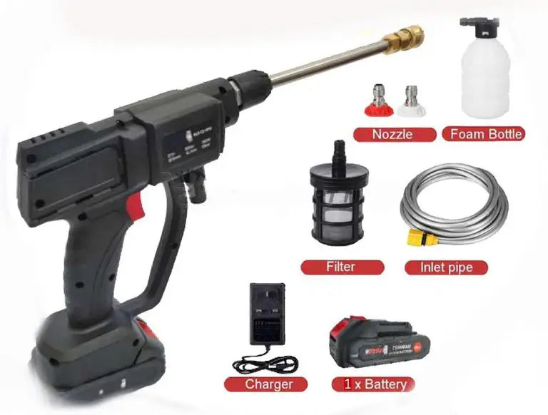 Experience the freedom of cordless cleaning with the Donkin 1000W High Pressure Washer. Its powerful 15000mAh battery ensures extended usage, while the stainless steel filter provides pure water for effective cleaning. Perfect for cars, floors, pools, and more.