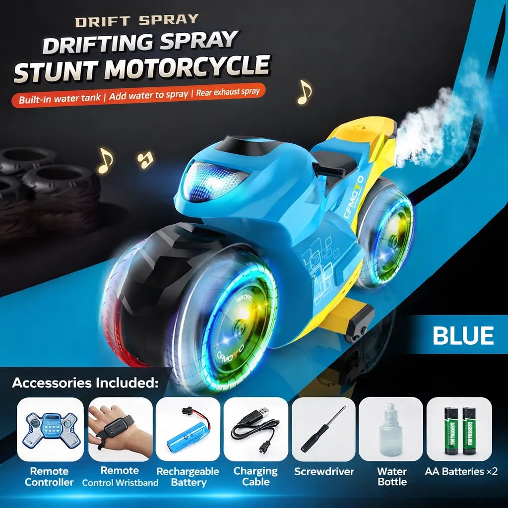 Get ready for high-speed drifts, insane stunts, and real spray effects with the Drift Spray Stunt Motorcycle! Equipped with 2.4G remote & gesture control, dynamic lights, and powerful battery life, this toy delivers non-stop action for kids who love racing and tricks.