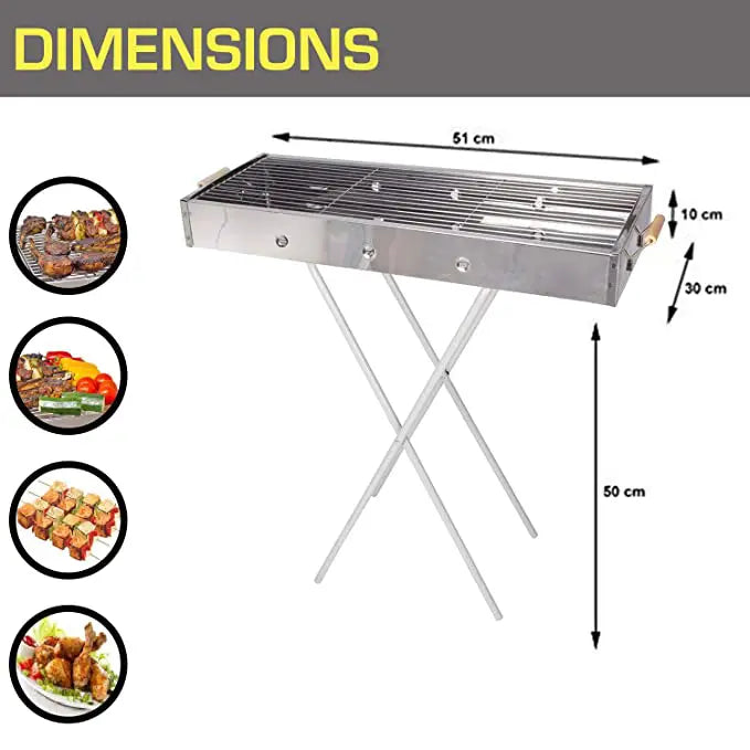 Experience effortless grilling with our Foldable Portable Barbeque Grill. Designed for convenience, this grill features a chrome-plated stand for durability and an easy-to-clean, non-stick surface. The lightweight, foldable design ensures easy transport, making it ideal for camping trips, picnics, and family gatherings. The air vents on both sides promote even heating, ensuring perfectly cooked food every time. Its ergonomic design and high-quality materials provide a reliable and enjoyable grilling experience.