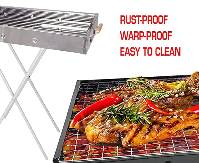 Enjoy seamless grilling with our foldable, chrome-plated BBQ grill. Lightweight and portable, it's perfect for camping, picnics, and family outings. Its anti-rust design ensures durability, while the air vents offer even cooking.
