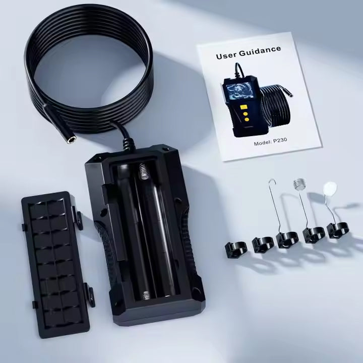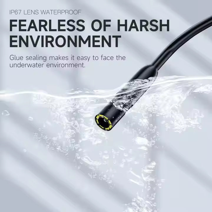 Designed for professionals, this industrial endoscope delivers real-time visuals in challenging spaces. With a 1080P waterproof camera and adjustable LED lights, it ensures clear visibility in dark or narrow areas.The 2-inch full-color LCD lets you view live footage without external devices. With a 5 Meter cable length for a wide range of inspection tasks. Perfect for plumbing, HVAC, automotive. engine diagnostics, and electronic inspections. Operates with 4 AA batteries offering up to 7 hours of continuous use. A must-have tool for maintenance, repair, and diagnostics in industrial and home settings.