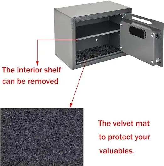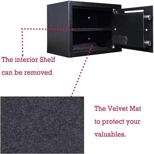 The Intelligent Electronic Safe Box is your reliable partner for protecting your valuable assets. With its substantial 8L capacity, this digital safety locker provides the perfect combination of security and convenience, making it an excellent choice for both home and office use. It boasts anti-theft construction, assuring you of peace of mind and the utmost protection for your belongings. This electronic safe box features a user-friendly digital keypad, ensuring quick and secure access. The 8L capacity, combined with a carpeted floor, safeguards your valuables from damage and scratches. Its tri-bolt locking system, along with two manual override keys, ensures you have a backup plan in case of any emergencies.