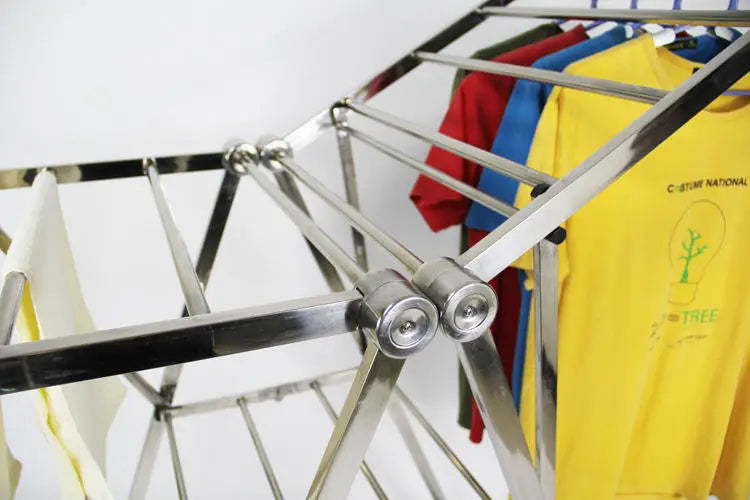A modern stainless steel drying rack designed for hanging and organizing clothes. Portable, durable, and suitable for everyday home use.