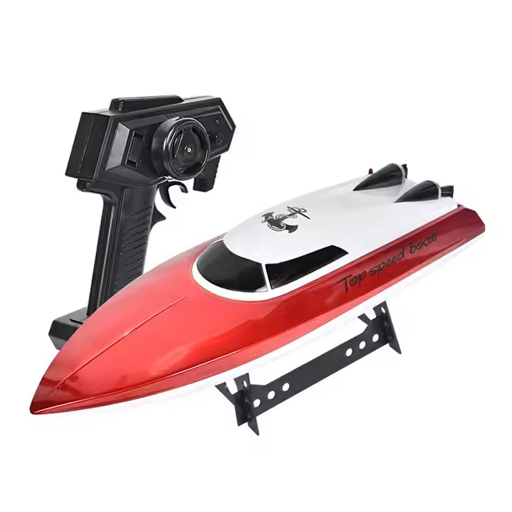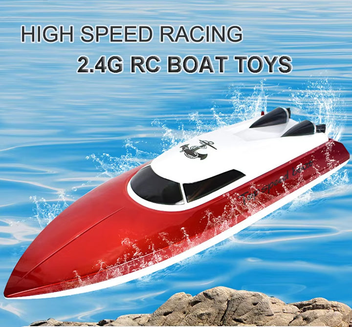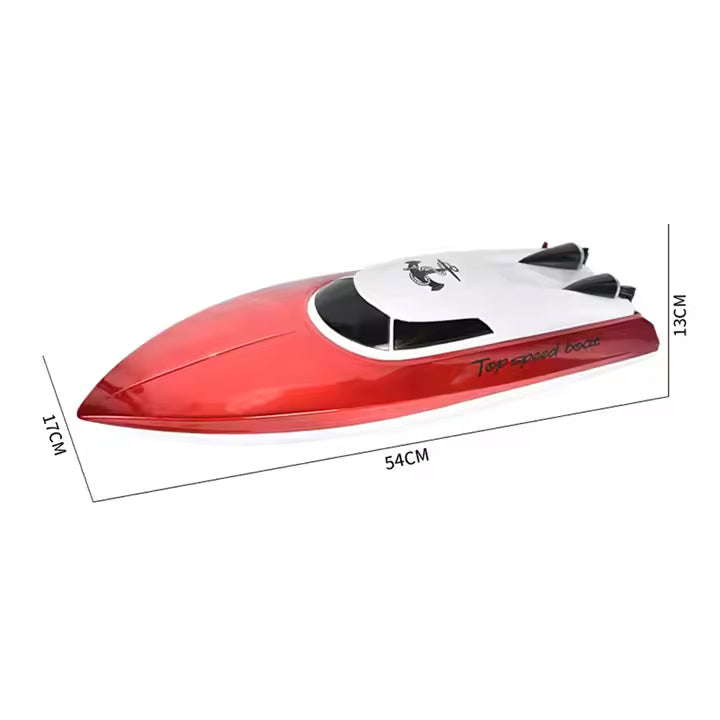 Take your water adventures to the next level with this High-Speed Racing Boat! Featuring a 2.4GHz remote control, professional high-torque propellers, and a powerful air-cooled motor, this boat cuts through the water with precision and speed. Equipped with a rechargeable 7.4V Li-Po battery, it delivers an exciting and long-lasting performance on lakes, pools, and open waters.