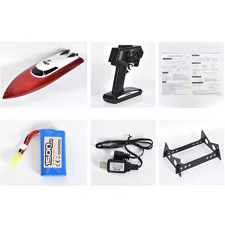 • Package Includes: 1 x High-Speed Racing Boat, 1 x Remote Controller (2.4GHz), 1 x Rechargeable 7.4V Li-Po Battery, 1 x Intelligent Charger