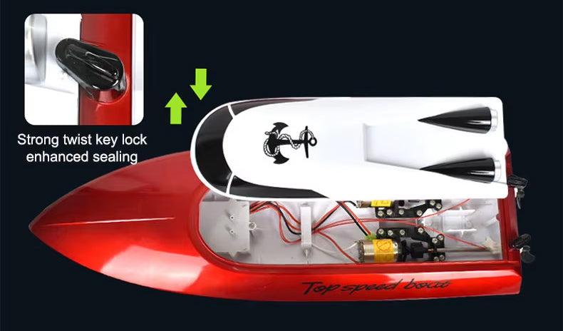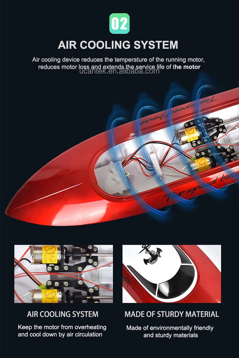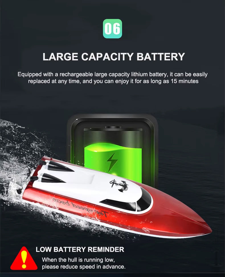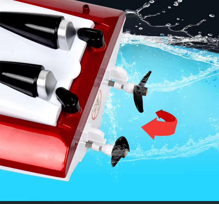 The professional high-torque propellers provide enhanced acceleration, while the 7.4V Li-Po rechargeable battery ensures extended playtime. Whether you're racing with friends or just enjoying solo water adventures, this top-performance RC boat guarantees endless fun and excitement.
