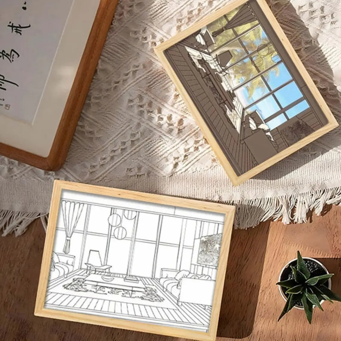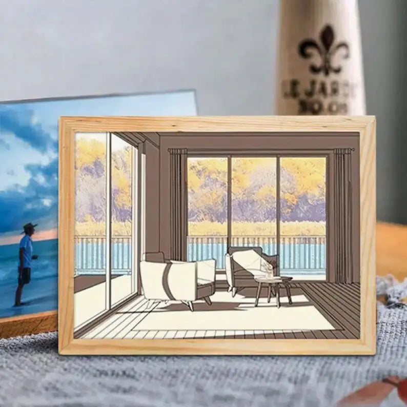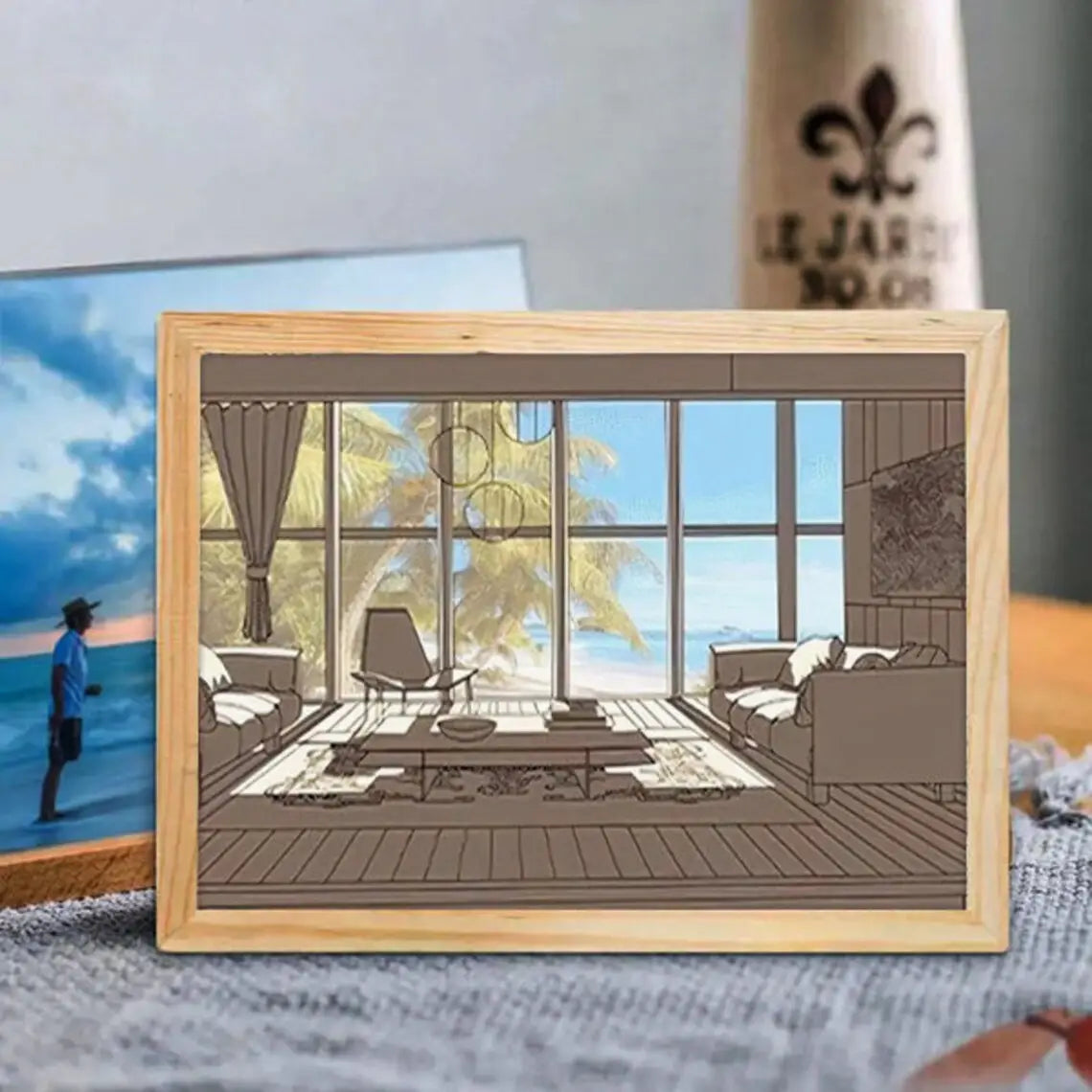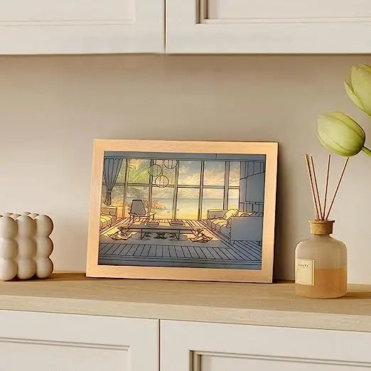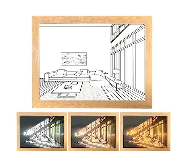 Enhance your photos with the LED Glowing Photo Frame, featuring three-color adjustable lighting and shadow art. Create a mesmerizing atmosphere in your home, living room, or hostel with this minimalist art decor.