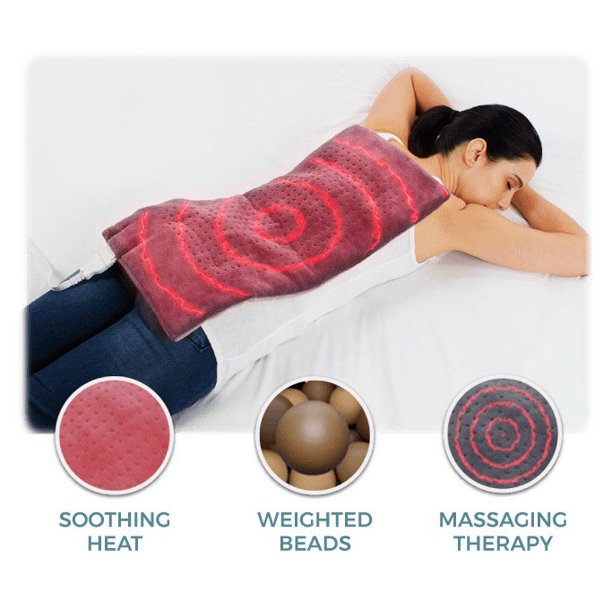 Experience ultimate relaxation with Calming Heat - a weighted massaging heating pad delivering targeted relief for muscles and joints.