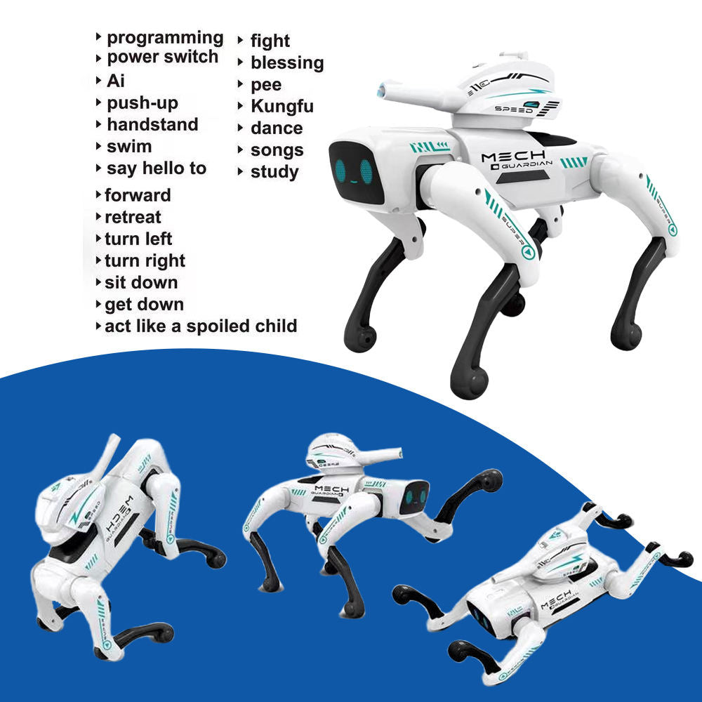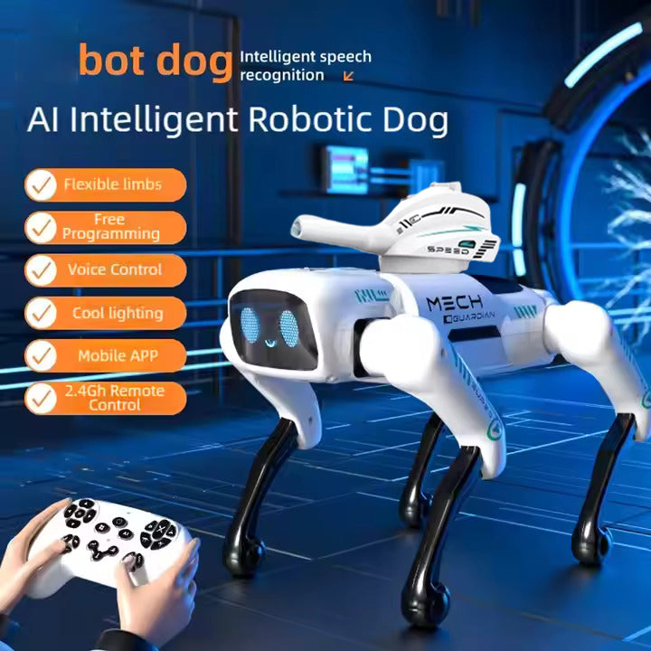 This interactive rechargeable robot dog toy brings fun and learning together for kids.Equipped with singing, dancing, storytelling, and programmable actions.Remote-controlled and made from safe, eco-friendly plastic.