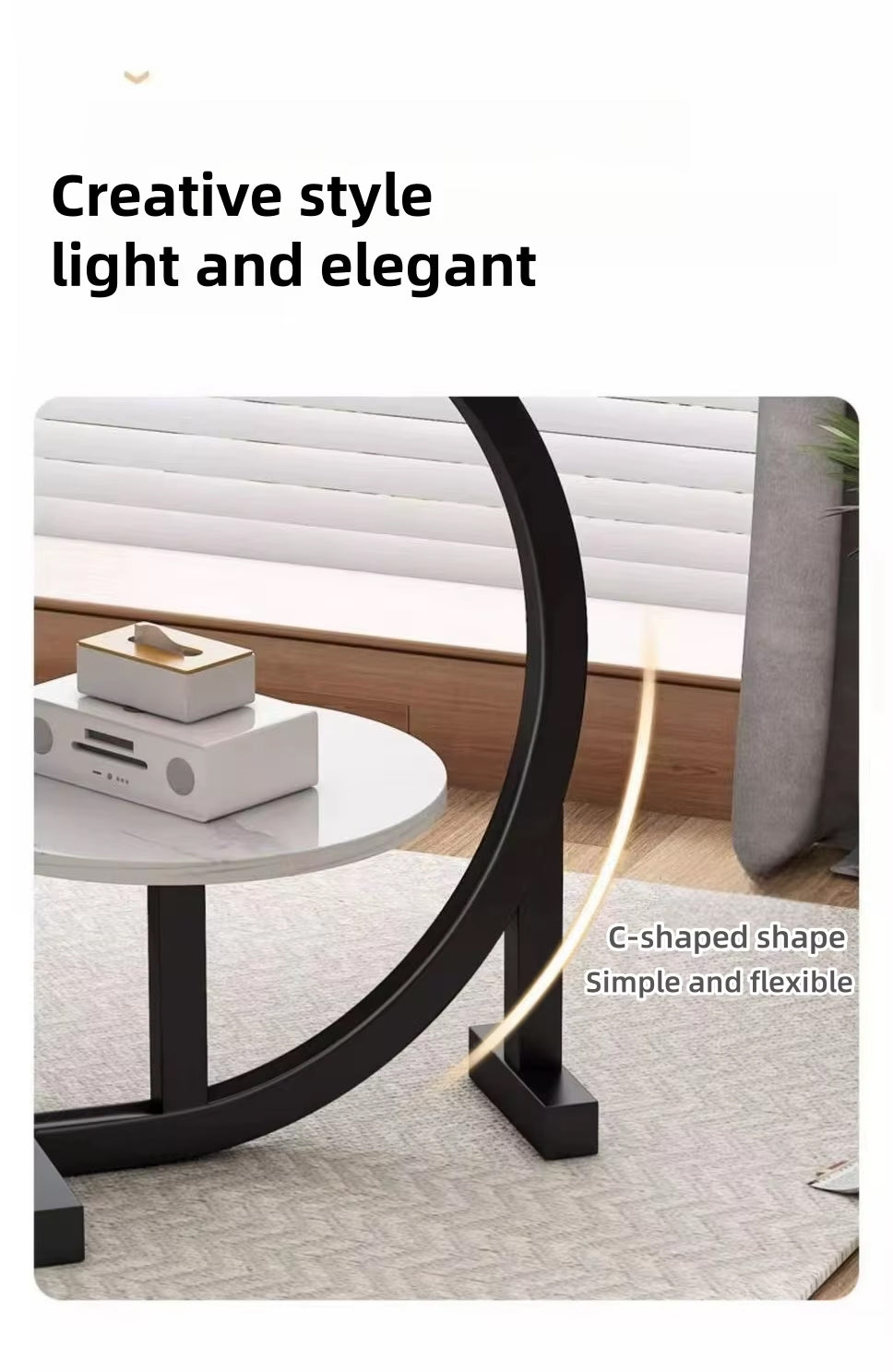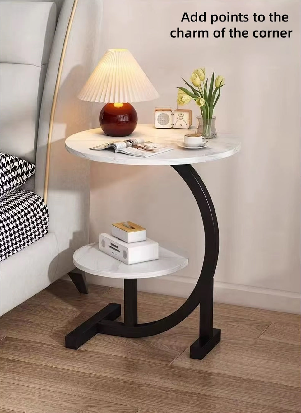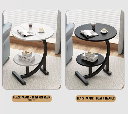 A Stylish Modern Round 2-Tier C-Shaped Side Table featuring a sleek design, dual-tier storage, and a sturdy steel frame. Perfect for living rooms, bedrooms, or offices, this compact coffee table effortlessly blends functionality with modern aesthetics.