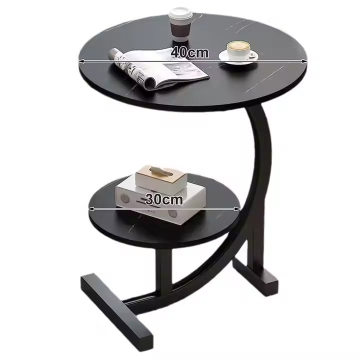 Elevate your space with the Modern Round 2-Tier C-Shaped Side Table, a versatile and stylish addition to any room. This round table features a dual-tier design, with an upper shelf for everyday essentials and a lower shelf for decorative items. Built with a durable C-shaped steel frame, it ensures stability and minimizes noise or shaking. Compact yet functional, this table fits seamlessly into corners, offering a sleek aesthetic while saving space. Whether used as a bedside table, sofa side table, or mini coffee table, its modern design complements contemporary living spaces, creating an elegant and comfortable atmosphere.