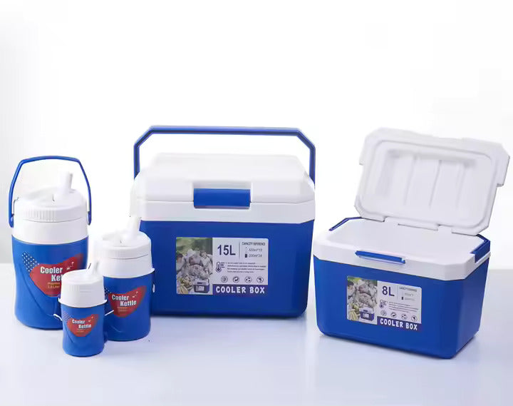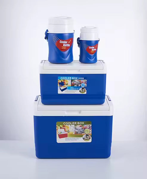 Enjoy fresh food and chilled drinks anywhere with this complete insulated cooler and kettle set — ideal for camping, fishing, picnics, and road trips. The set includes two coolers: a large 15-liter cooler and a smaller 8-liter cooler, both crafted from high-quality plastic for maximum durability and insulation.
