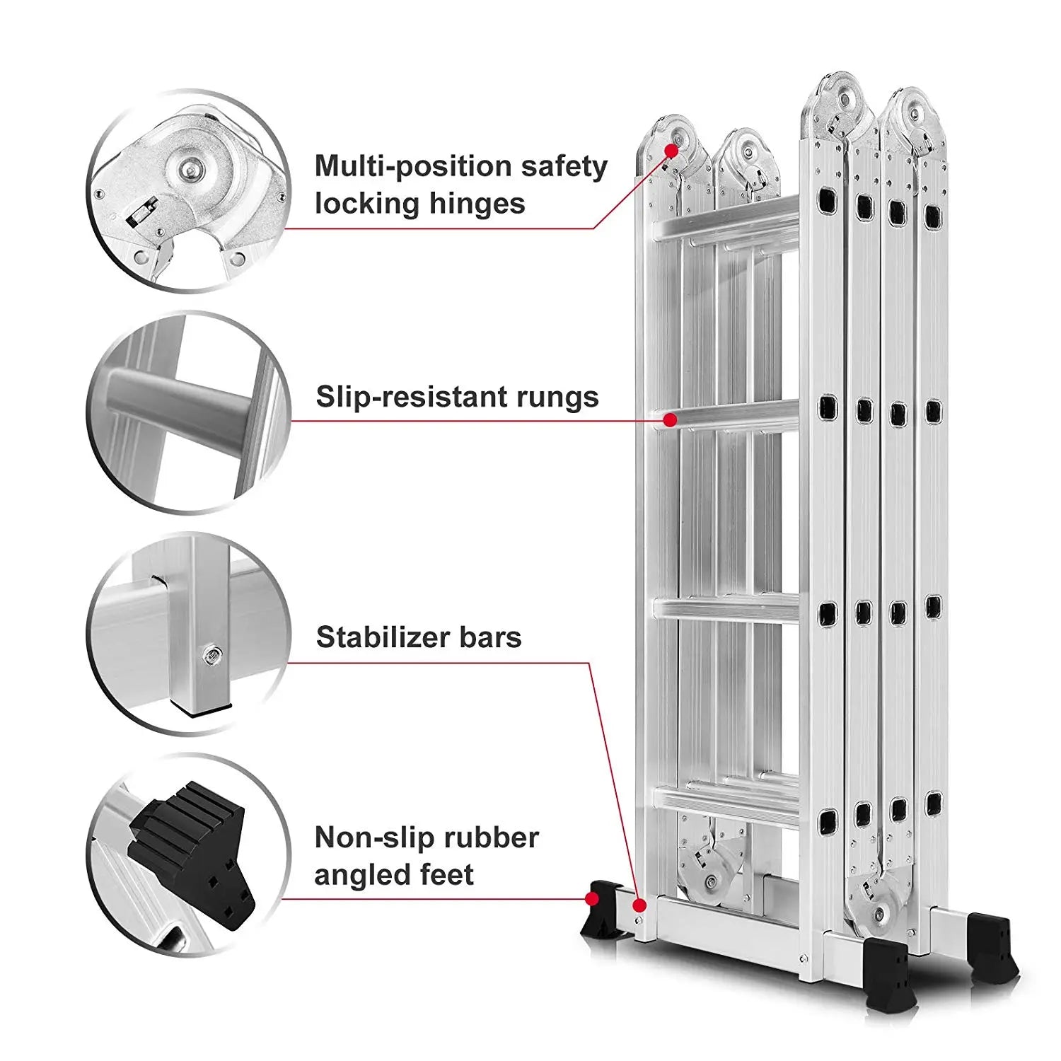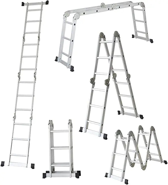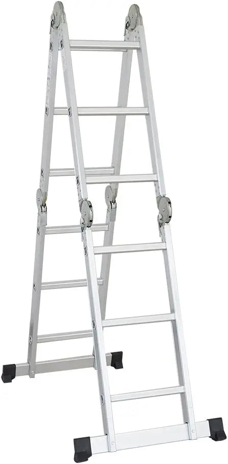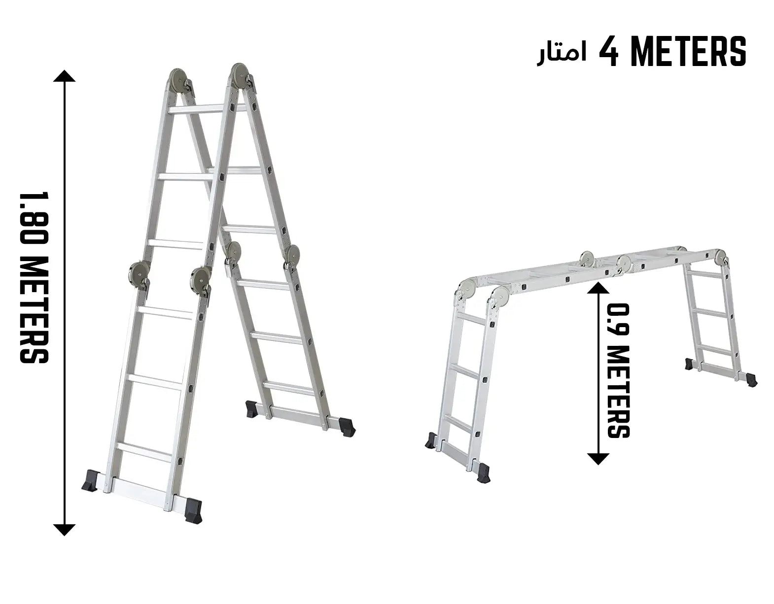 Enhance your tasks with this durable Aluminium Ladder. Designed to cater to both household and industrial needs, this ladder offers a height of 4 m /6 m, ensuring you can reach high places with ease. Crafted from premium-quality aluminium, it boasts exceptional sturdiness and can support up to 150 kg of weight, granting you a reliable and safe tool for various activities. The non-slip rungs and rubber feet enhance safety by preventing slips and accidents. The ladder's adaptability shines through its adjustability, allowing you to transform it into different configurations to suit diverse tasks. And when not in use, its foldable design ensures hassle-free storage and transportation."