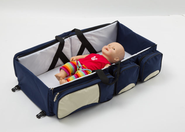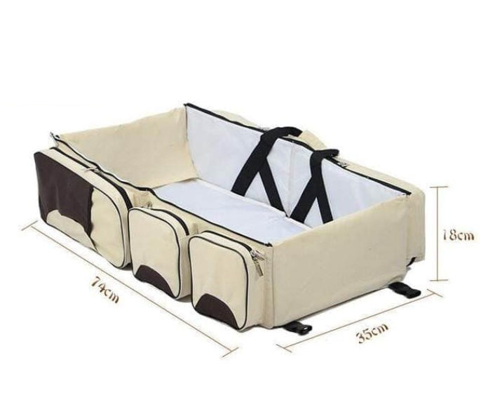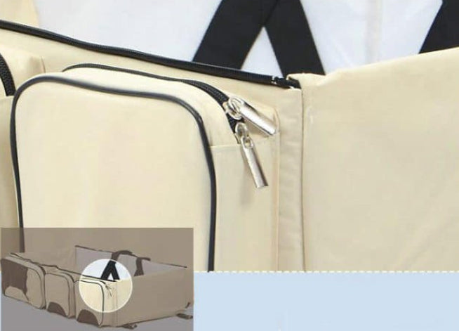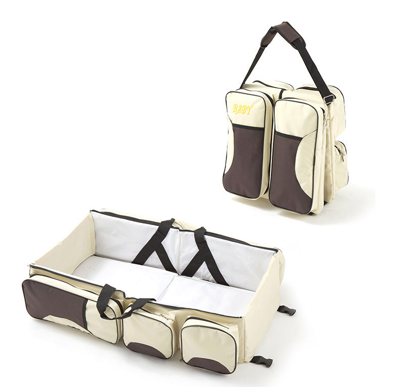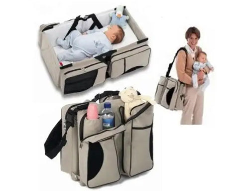Introducing the Portable Baby Diaper Bag, Travel Bed, and Change Station – your ideal companion with 3-in-1 design for busy parents on the move. This multifunctional marvel, crafted from durable polyester and fabric, effortlessly transforms from a spacious diaper bag into a cozy travel bed in seconds, ensuring your baby can sleep soundly. The adjustable strap, multiple storage pockets, and top-quality zipper guarantee convenience and longevity. Designed with a sturdy build and waterproof cushioning, it offers more than just storage – it's a secure and comfortable haven for your baby wherever your adventures take you. The lightweight design and easy folding capability make travelling hassle-free. Built-in storage compartments help you keep baby essentials organized. Elevate your parenting journey with the Baby Bed Bag – where convenience meets comfort, and your baby can enjoy peaceful sleep on the go.