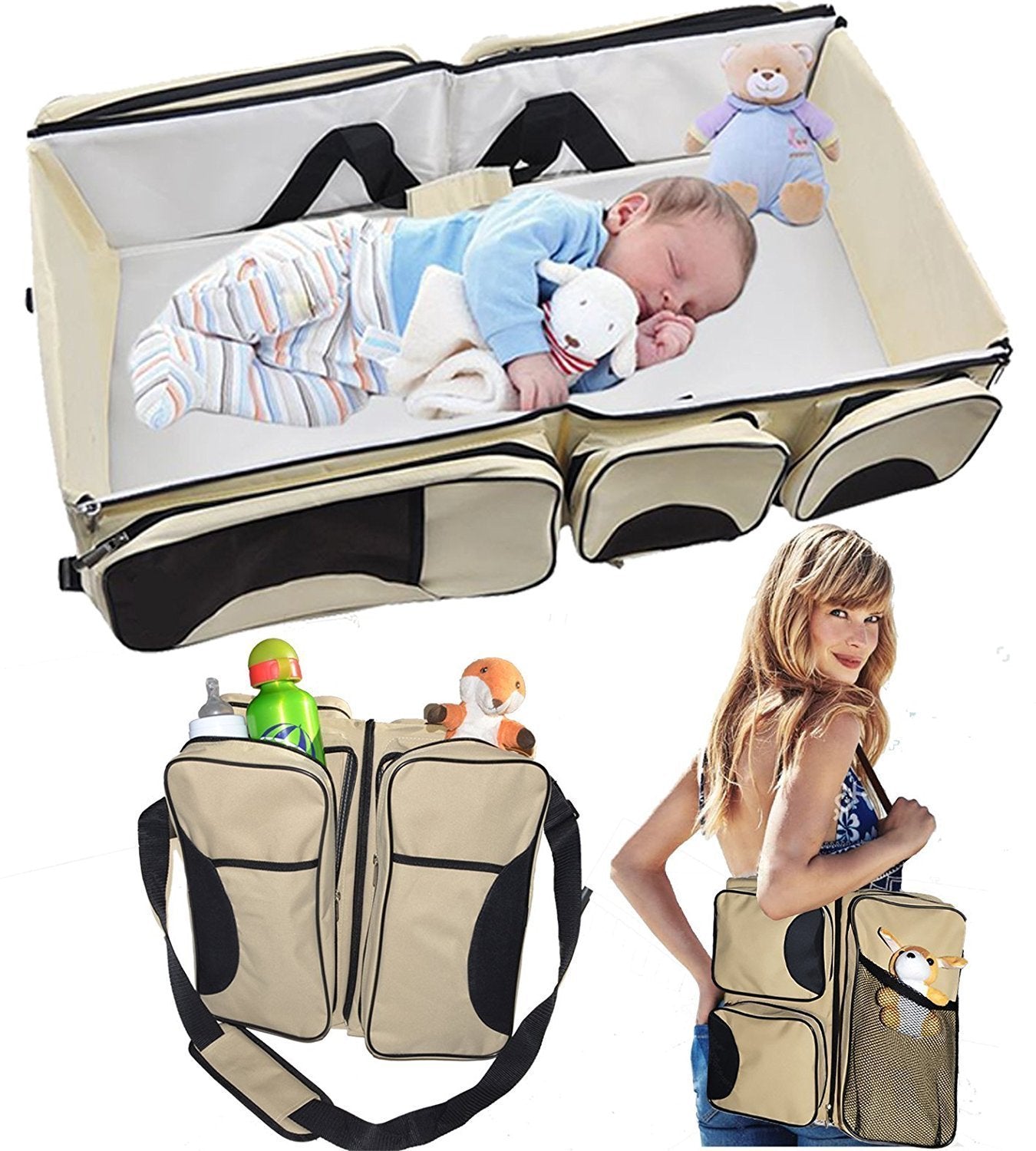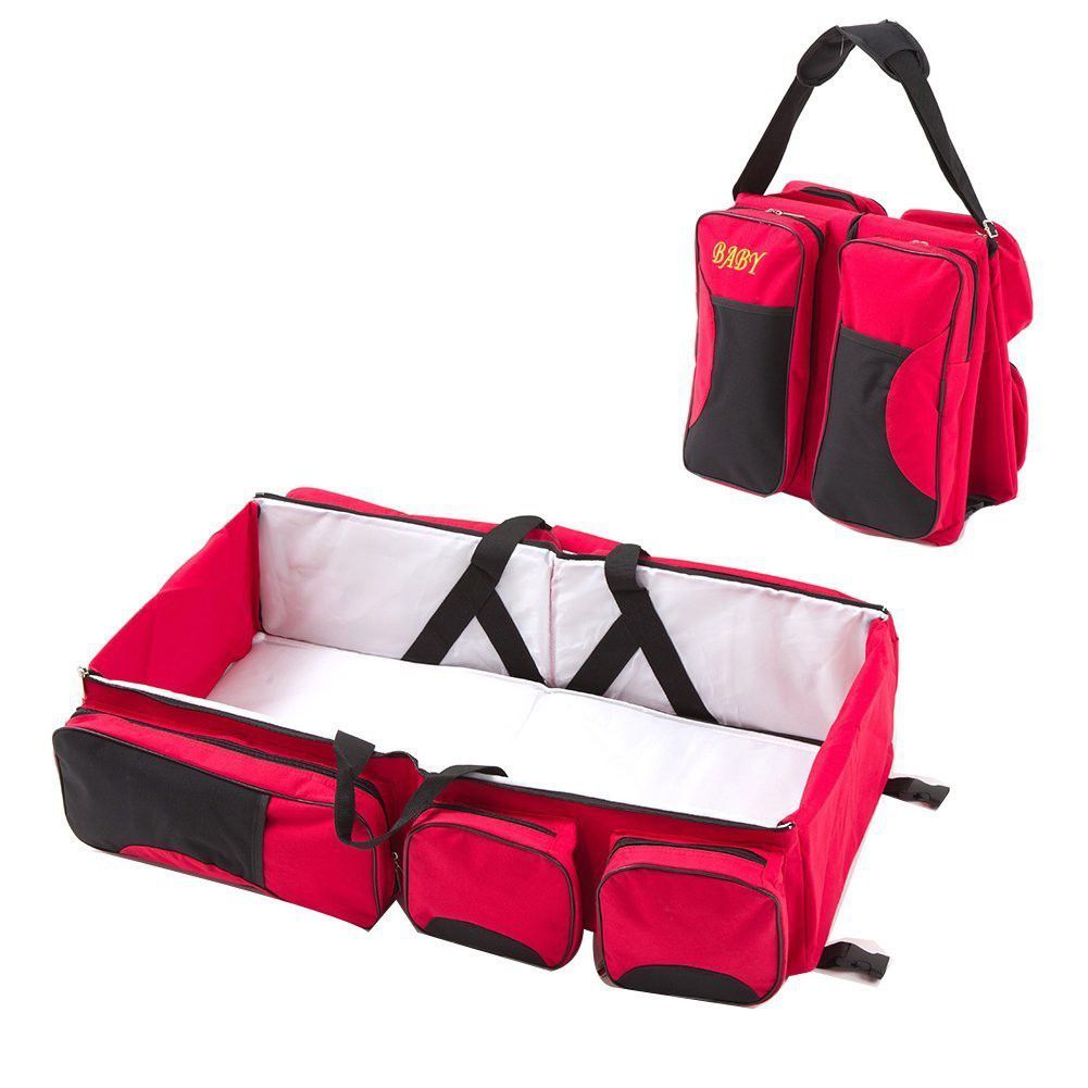 • 3-in-1 Design: Diaper Bag, Travel Bed, Change Station