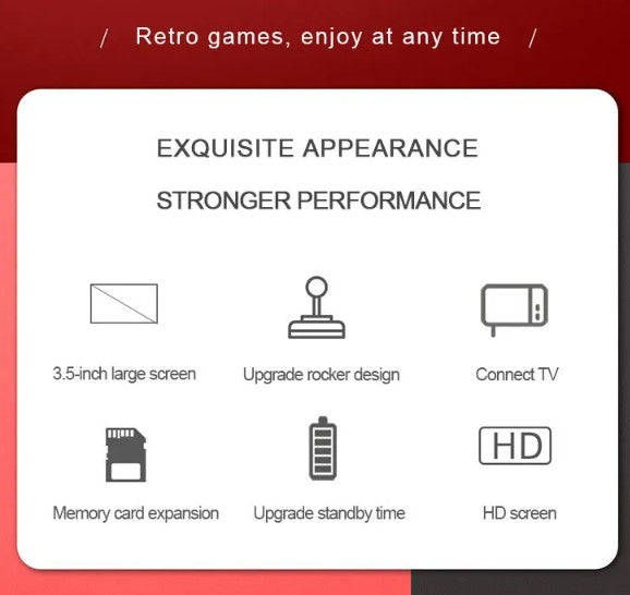 • Perfect for Retro Gaming Enthusiasts: Relive the classic gaming era in a compact and portable device.