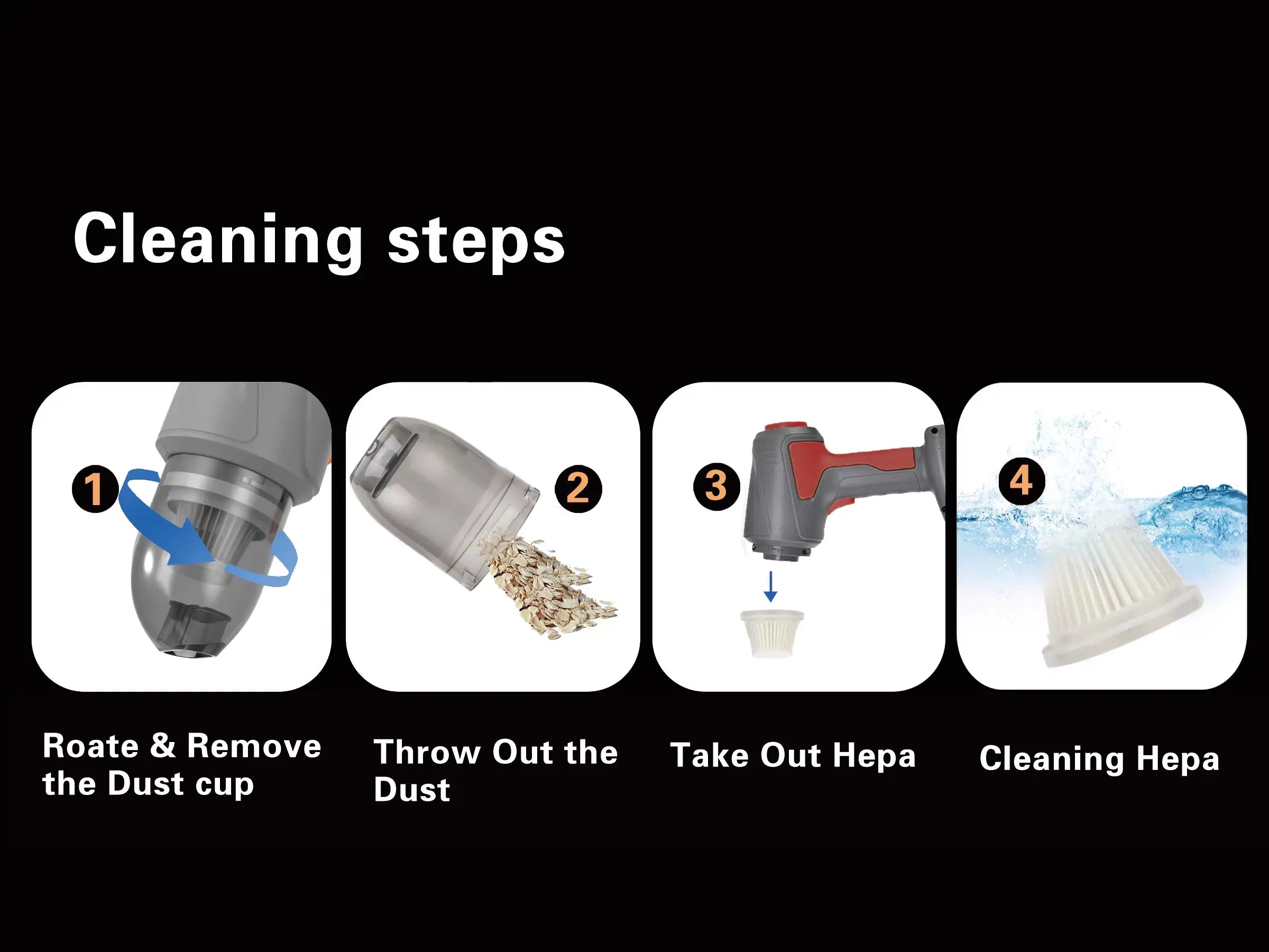 Equipped with a washable ultra-fine HEPA filter, it ensures cleaner air circulation while capturing fine particles. The 3000mAh removable rechargeable battery delivers a consistent 8–10 minutes of runtime per full charge, with rapid 2–2.5 hour recharging via the included DC21V fast charger.