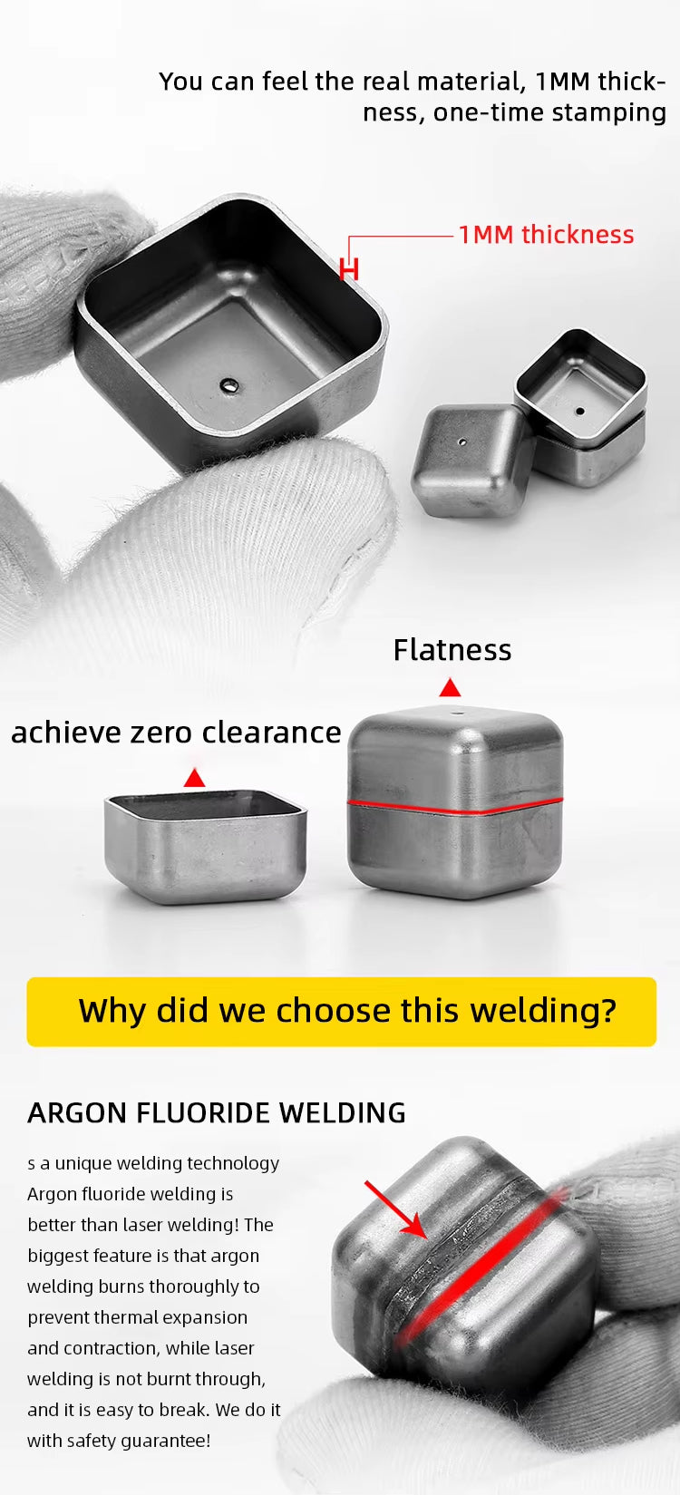 Enhance your drinking experience with our Stainless Steel Quick-Freeze Chilling Cubes Set. Crafted from durable stainless steel, these cubes ensure rapid freezing and prolonged chilling, preserving the authentic taste of your beverages. Say goodbye to watered-down drinks and hello to refreshing sips every time.