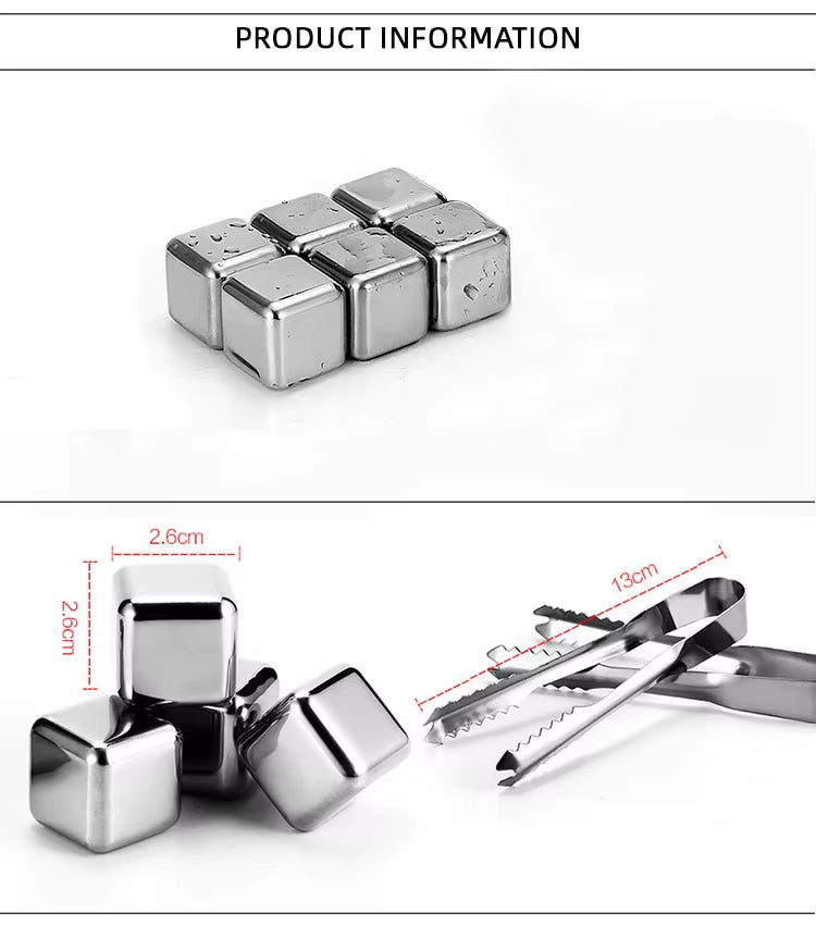 Introducing Stainless Steel Quick-Freeze Chilling Cubes Set, crafted from durable stainless steel. These cubes ensure rapid freezing and prolonged chilling, preserving the authentic taste of your beverages. Say goodbye to watered-down drinks and hello to refreshing sips every time. Convenient, reusable, and recyclable, our cubes are a must-have for any beverage enthusiast. Whether you're enjoying a glass of soft drink or a fruit juice, these recyclable stainless steel cubes are safe to use and maintain the true taste of your beverage. With a pack of 6 cubes, you'll have ample chilling capacity for gatherings and solo indulgence alike. Simply freeze, drop, and savor the pure flavor experience. Immerse yourself in the ultimate drink enjoyment with our Stainless Steel Quick-Freeze Chilling Cubes.
