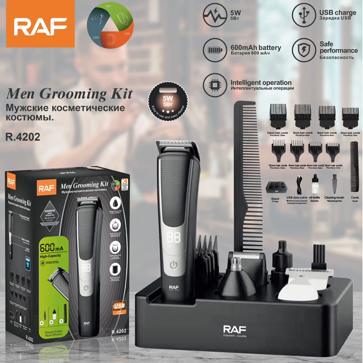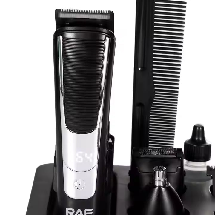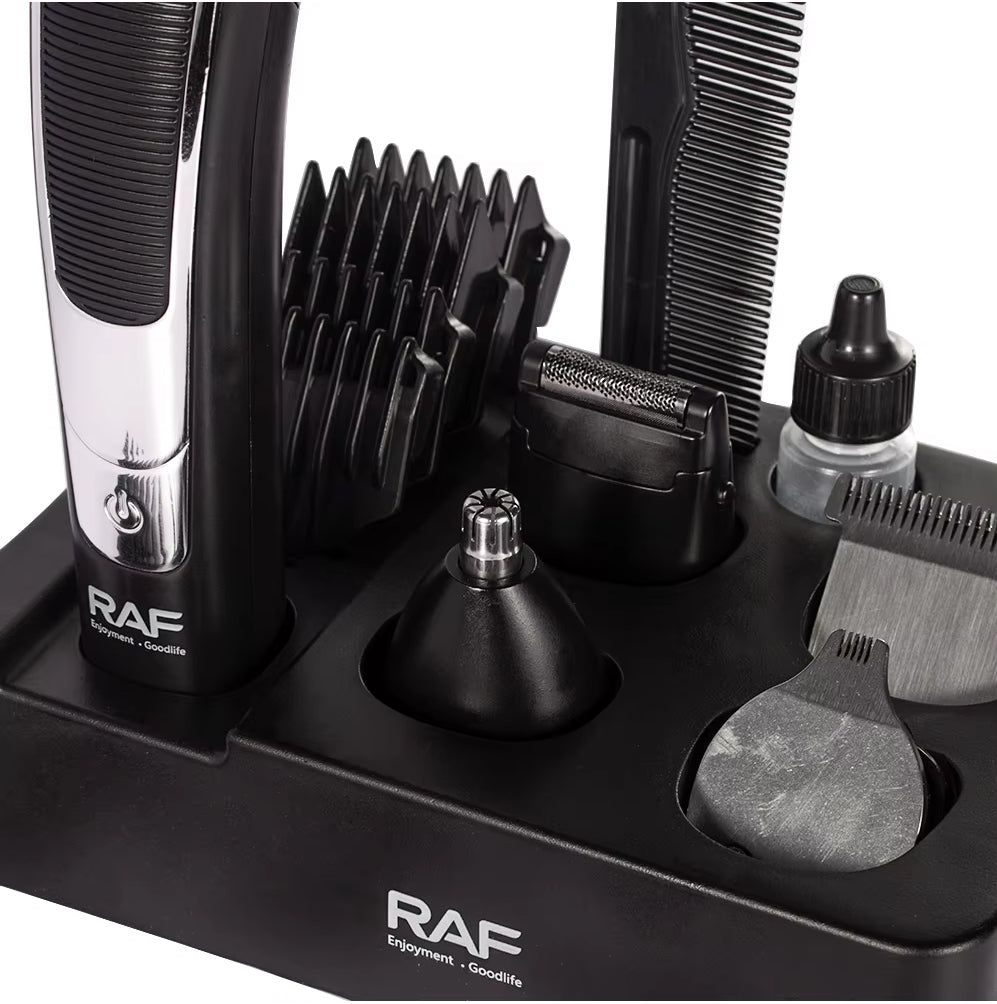 Upgrade your grooming routine with the RAF 14-in-1 Men’s Grooming Kit! Featuring a hair trimmer, electric shaver, nose hair trimmer, and more, this high-speed 6000 RPM motor device delivers sharp, fast, and precise trimming. With USB rechargeability, 100-minute runtime, 8 limit combs, and a washable design, it’s the ultimate all-in-one grooming solution.