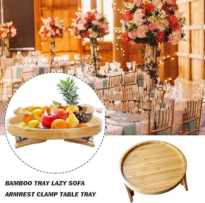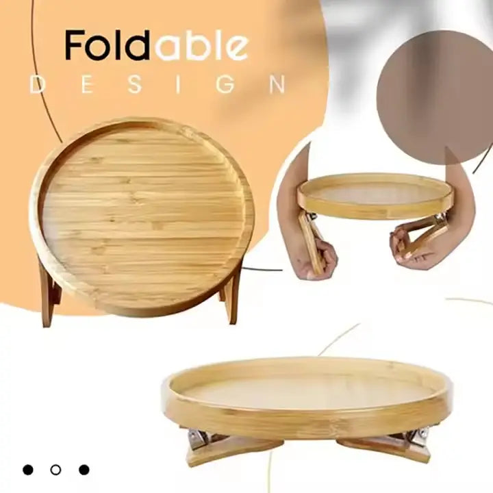 Transform your sofa into a convenient space with the Round Wooden Sofa Armrest Clamp Tray. Crafted from eco-friendly bamboo, it securely clamps onto your sofa's armrest, making it perfect for serving food, drinks, or holding your essentials. A foldable, multifunctional design ensures both style and practicality for everyday use or special occasions.