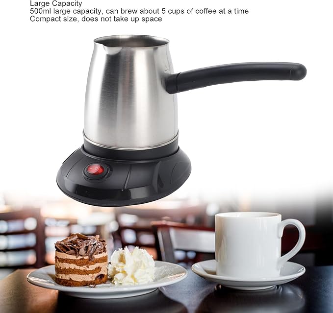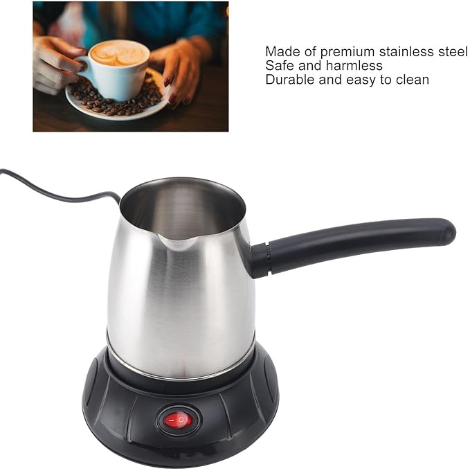 Enjoy the perfect cup of Turkish coffee with this 500ml Electric Turkish Coffee Pot, designed for convenience, safety, and versatility. The stainless steel body ensures durability, while the removable anti-scald handle allows for easy storage.
