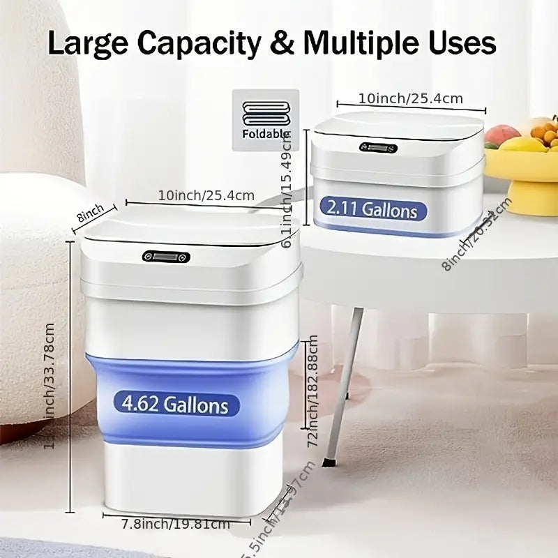 Experience touchless trash disposal with our Smart Sensor Folding Trash Can. Its compact design and motion sensor make it perfect for any space.