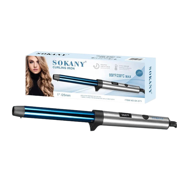 Create beautiful, long-lasting curls effortlessly with this Sokany Hair Curler. Featuring a 25mm steel tube diameter and Nano Titanium technology, this curling iron ensures even heat distribution for gentler styling. With digital temperature control and a maximum heat of 950°F, you can achieve perfect curls every time. The 360-degree rotary power line allows for easy manoeuvrability, and the scratch-resistant body adds durability.